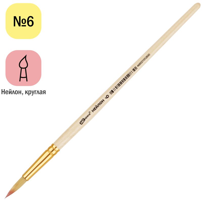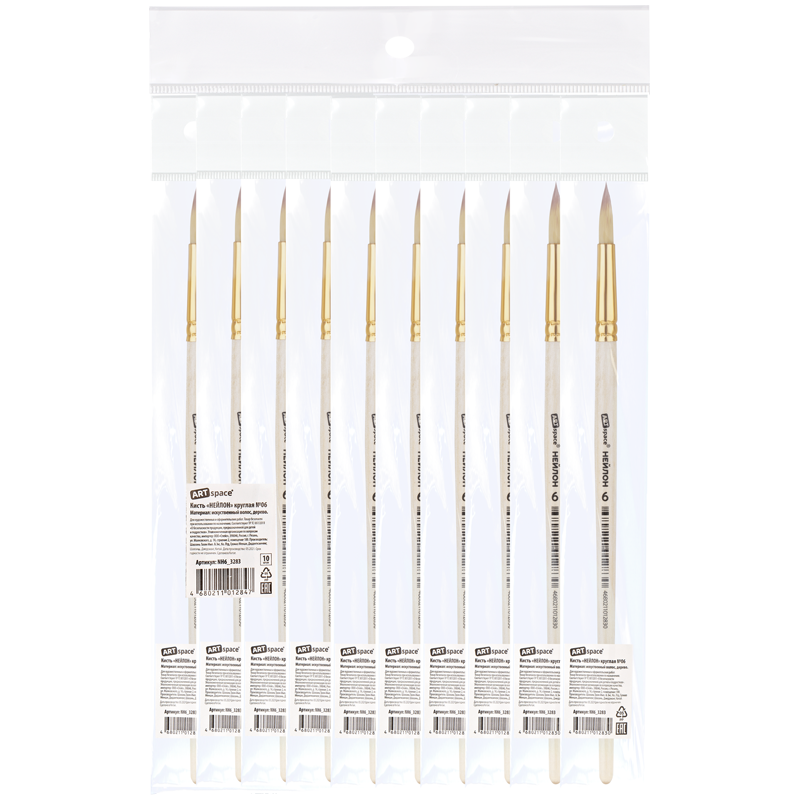 Кисть нейлон, ArtSpace, круглая №06, пакет, европодвес