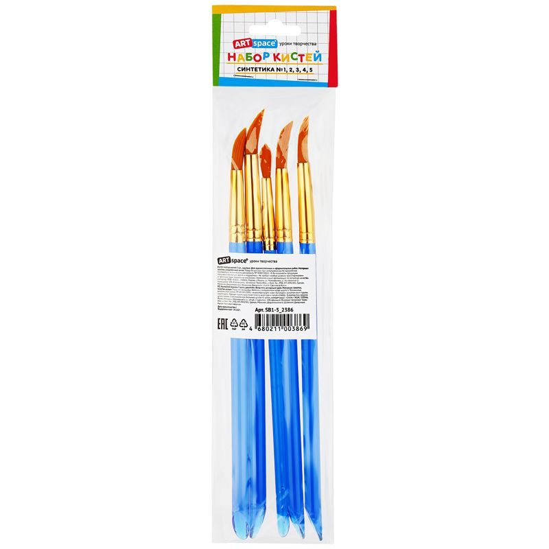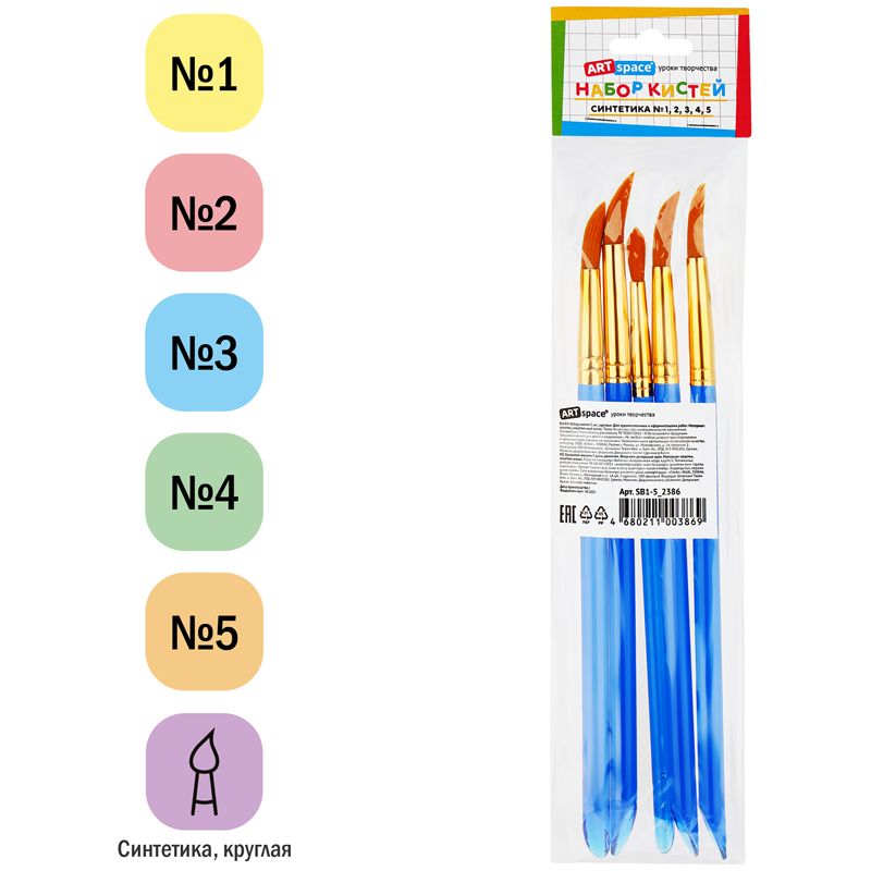 Набор кистей ArtSpace 5шт., синтетика, круглые, № 1, 2, 3, 4, 5, пакет, европодвес