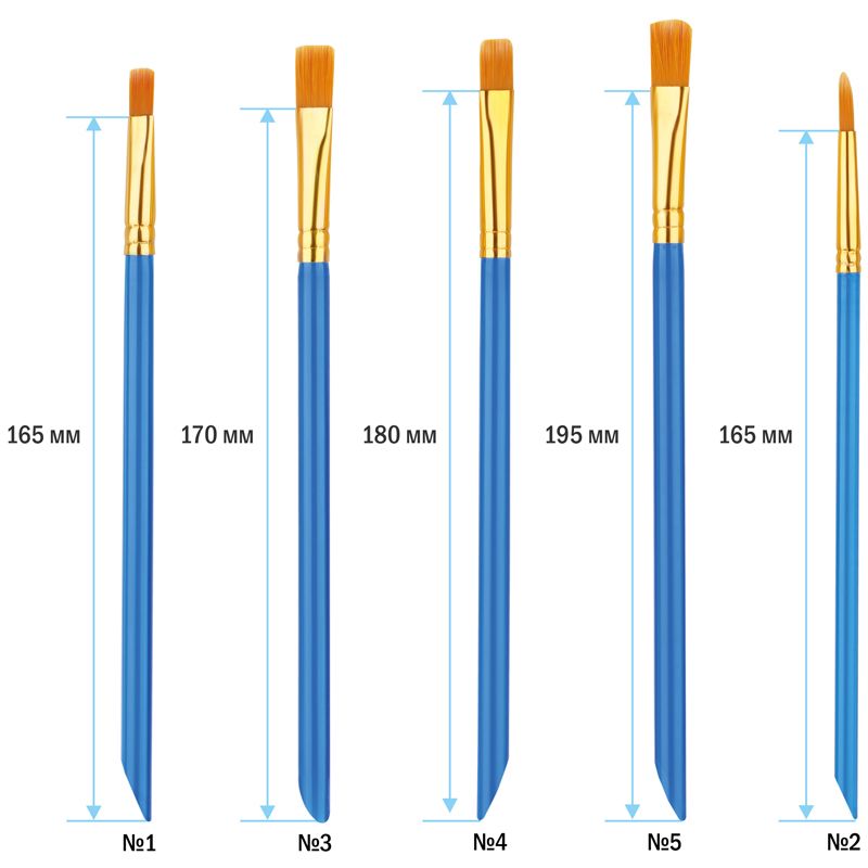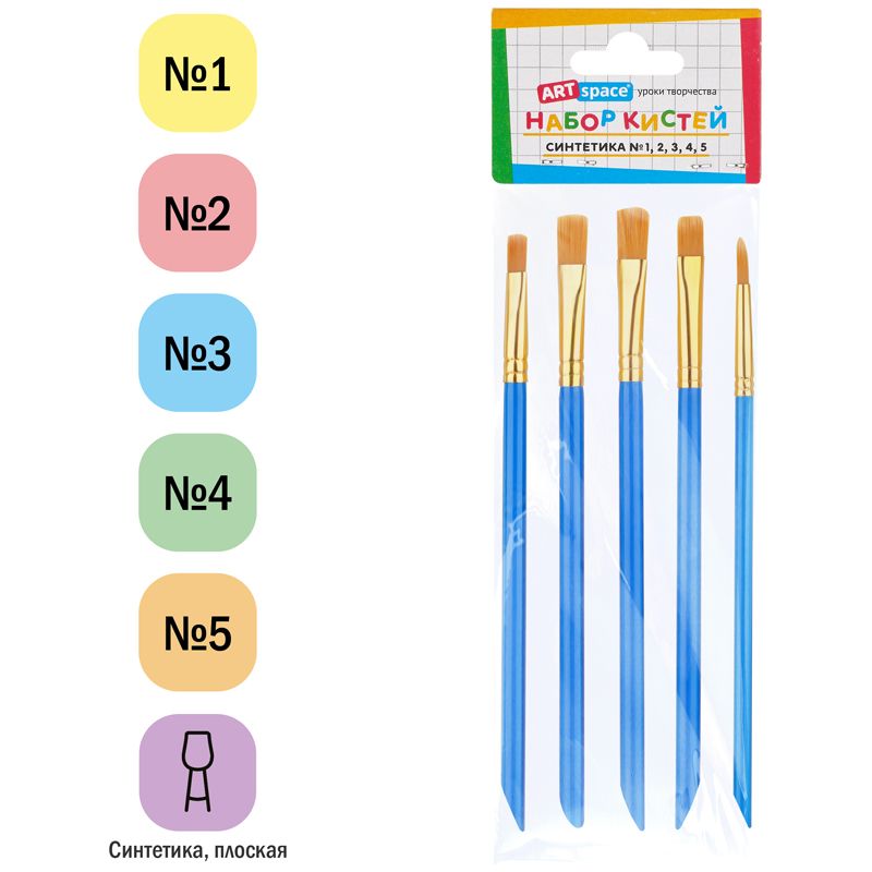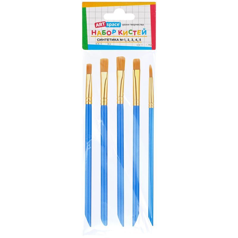 Набор кистей ArtSpace 5шт., синтетика, плоские, № 1, 2, 3, 4, 5, пакет, европодвес