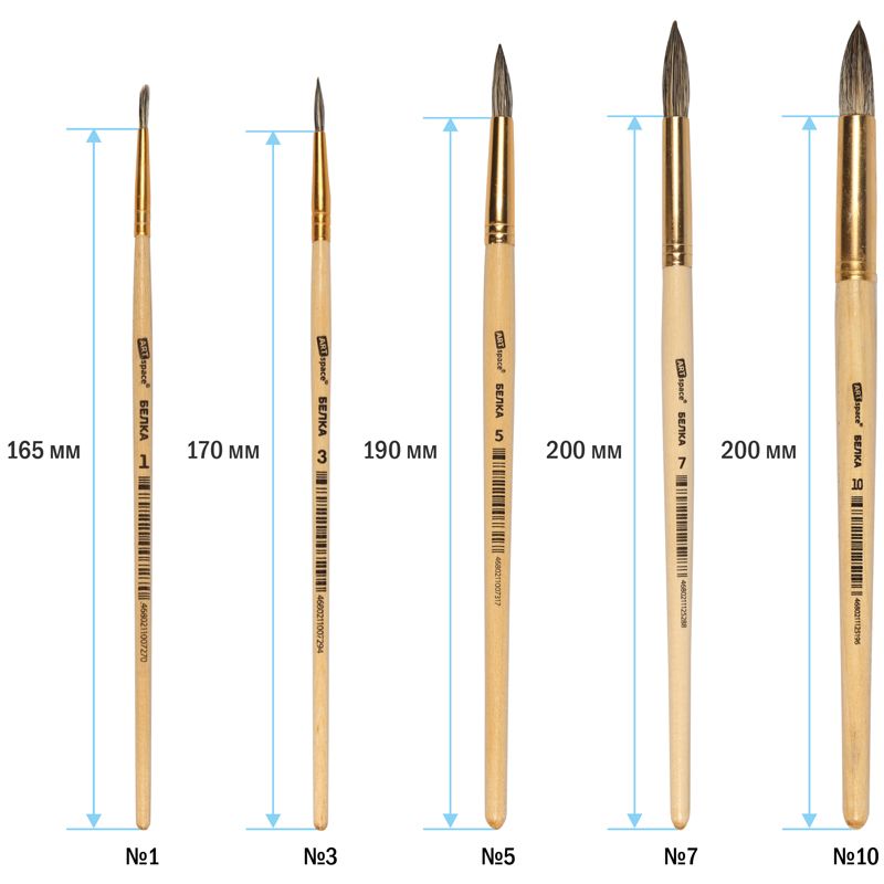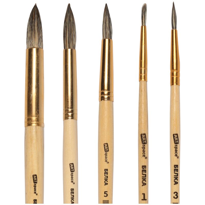 Набор кистей ArtSpace 6шт., белка, круглые, № 1, 3, 5, 7, 9, 11, блистер