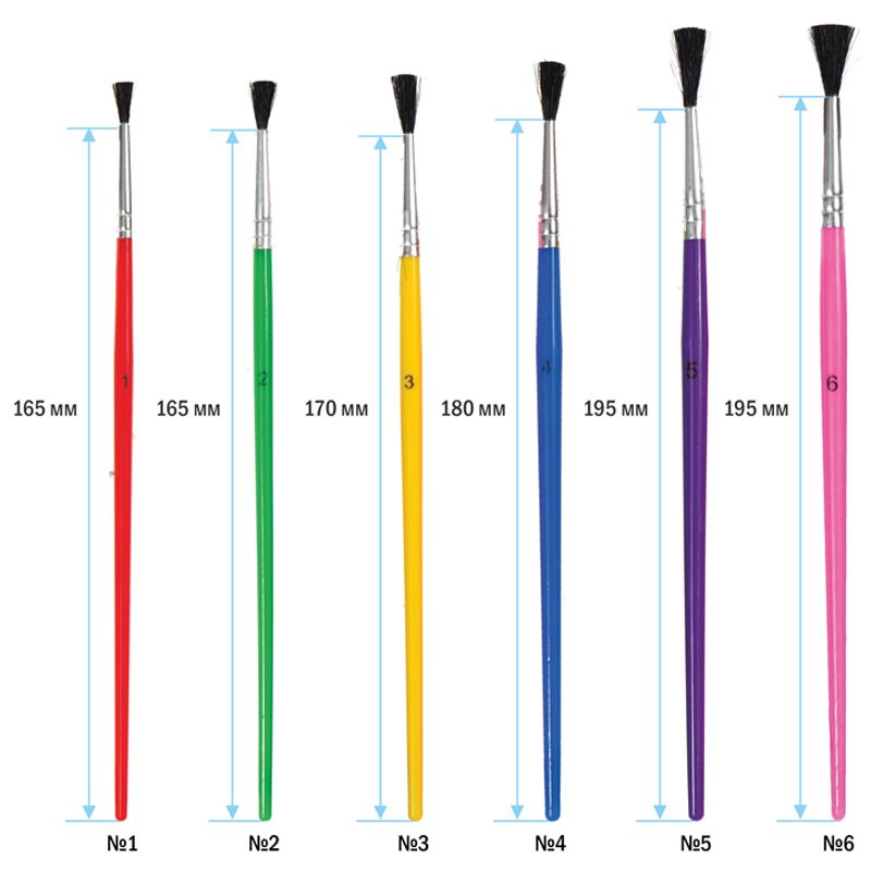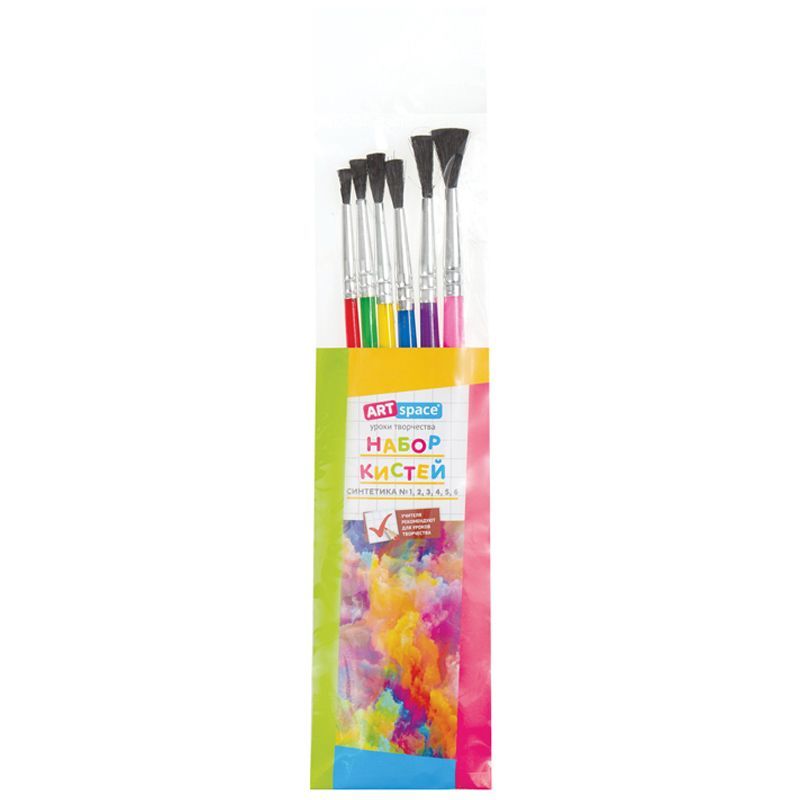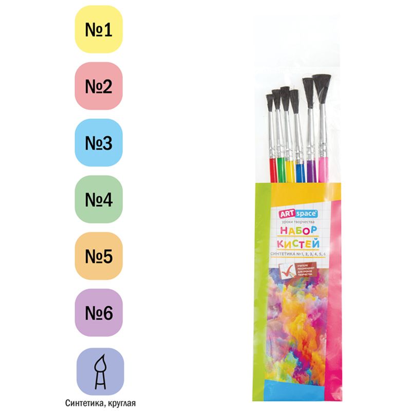 Набор кистей ArtSpace 6шт., синтетика, круглые, № 1, 2, 3, 4, 5, 6, пакет, европодвес
