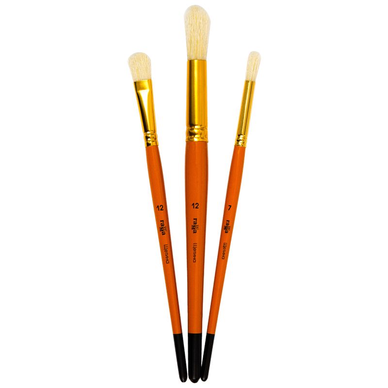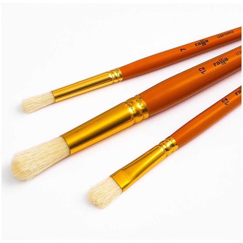 Набор кистей Гамма "Классические" 3шт., щетина, круглые № 7, 12, плоская № 12, блистер, европодвес