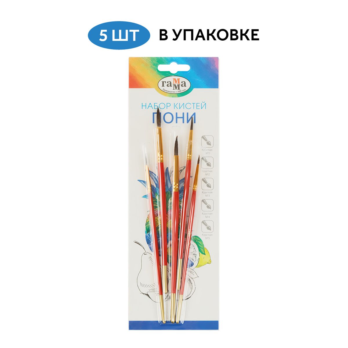 Набор кистей Гамма "Классические" 5шт., пони, круглые № 1, 2, 3, 4, 5, блистер, европодвес