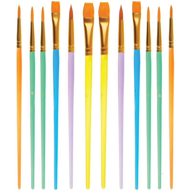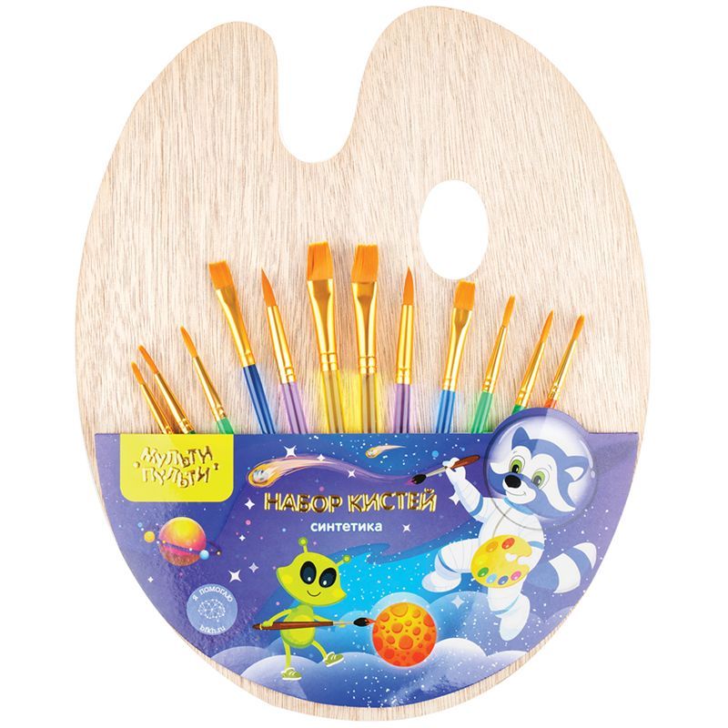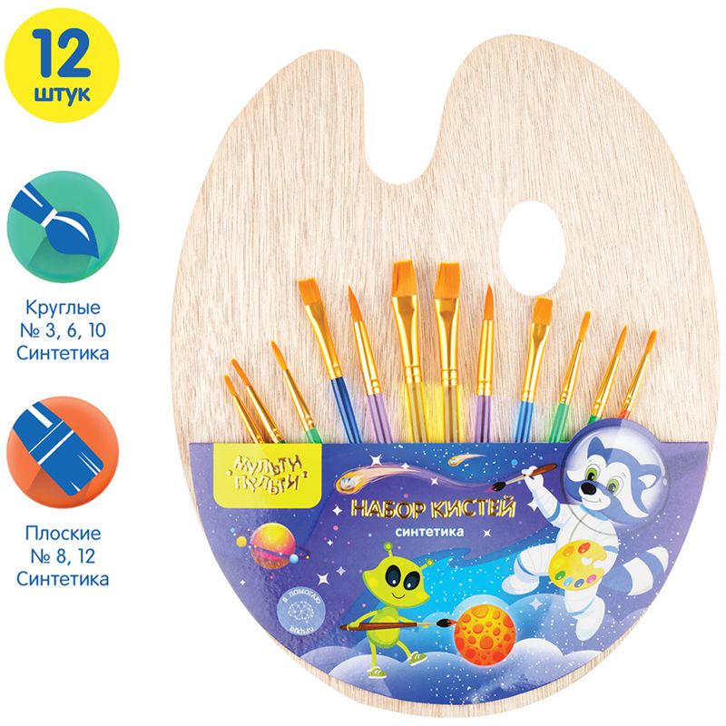 Набор кистей Мульти-Пульти 12шт., синтетика, №: 3 круглые, № 6 круглые, № 8 плоские, № 10 круглые, № 12 плоские, в упаковке с палитрой