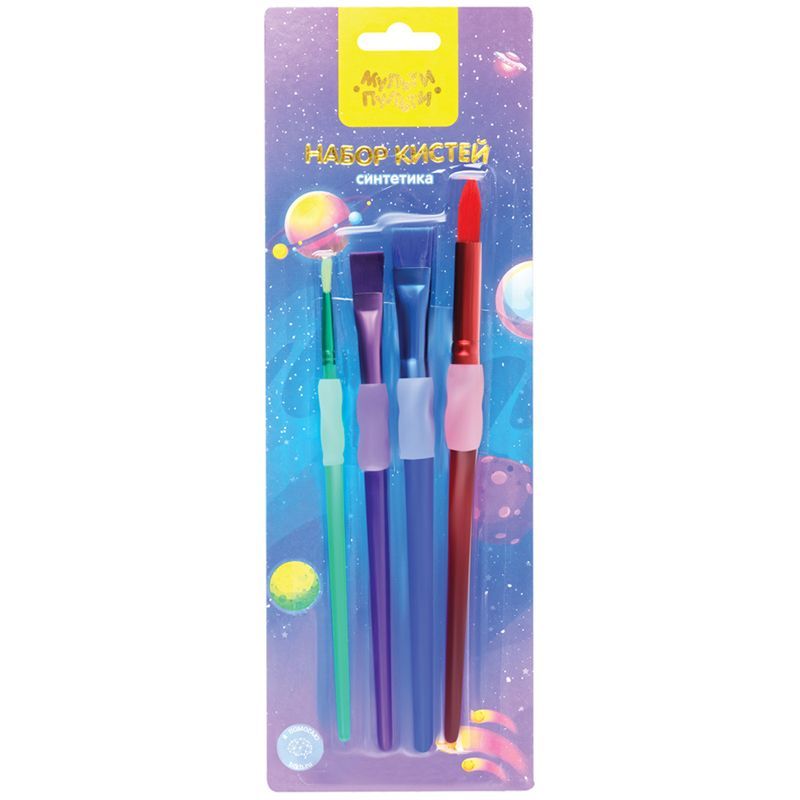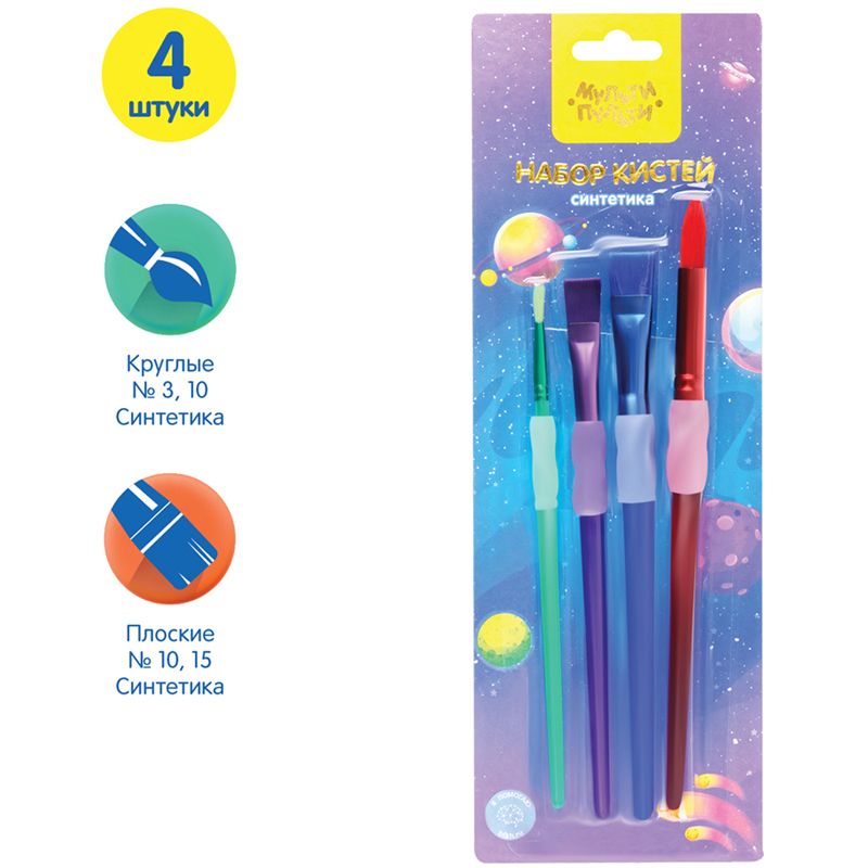 Набор кистей Мульти-Пульти 4шт., синтетика, № 10, 15 плоские, № 3, 10 круглые, с силиконовым грипом, блистер, европодвес