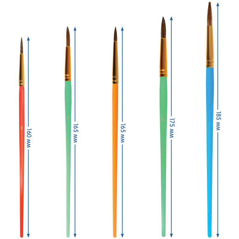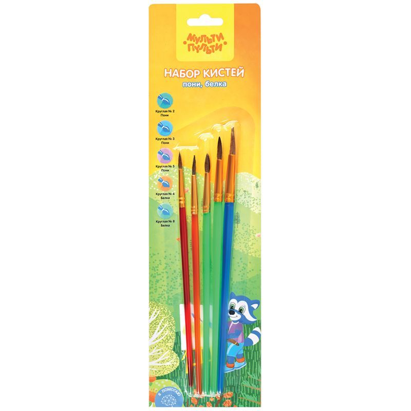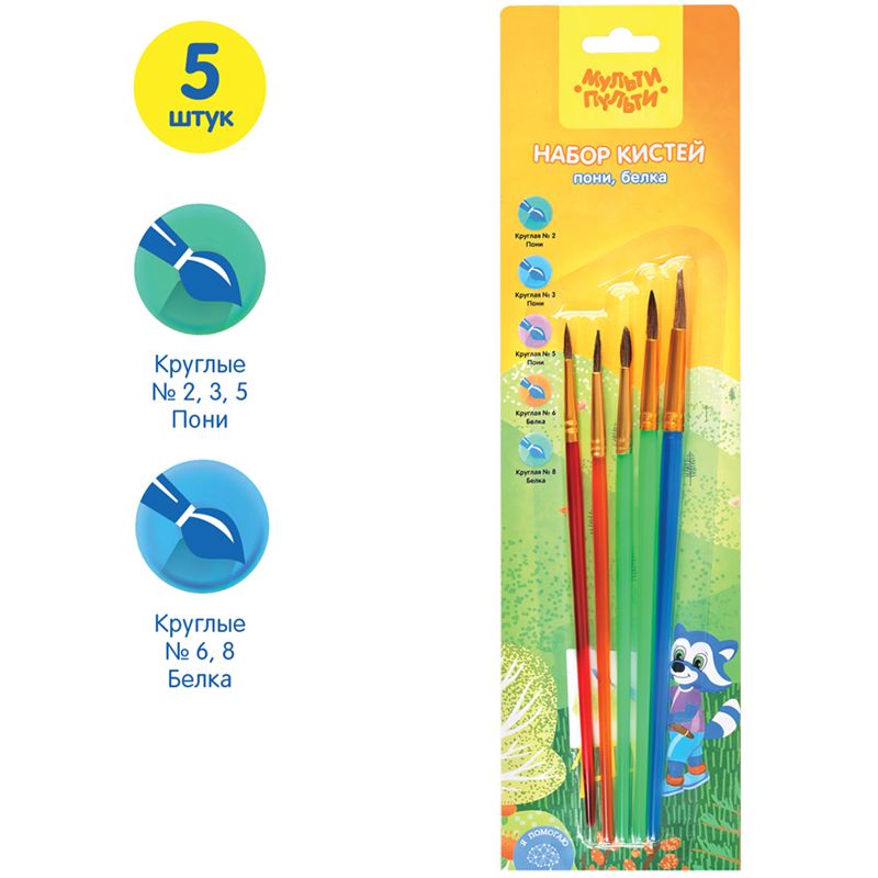 Набор кистей Мульти-Пульти 5шт., пони № 2, 3, 5 круглые, белка № 6, 8, круглые, блистер, европодвес
