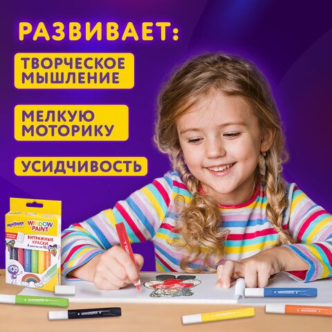 Краски витражные ЮНЛАНДИЯ, 6 ярких цветов, 6 туб по 10,5 мл, шаблоны, 191758