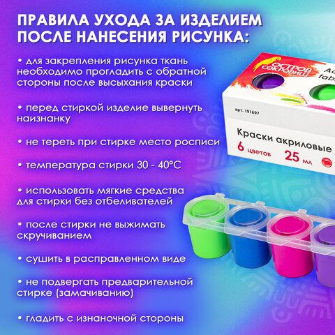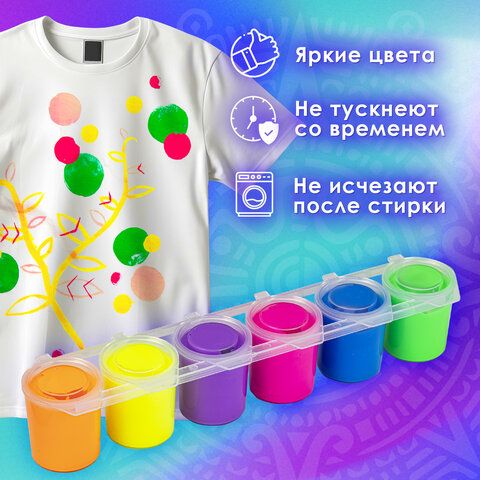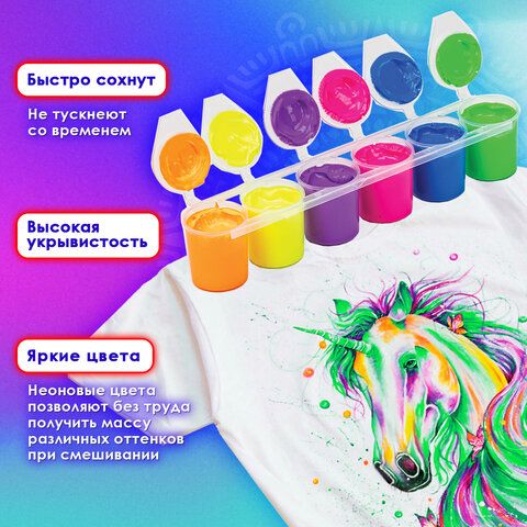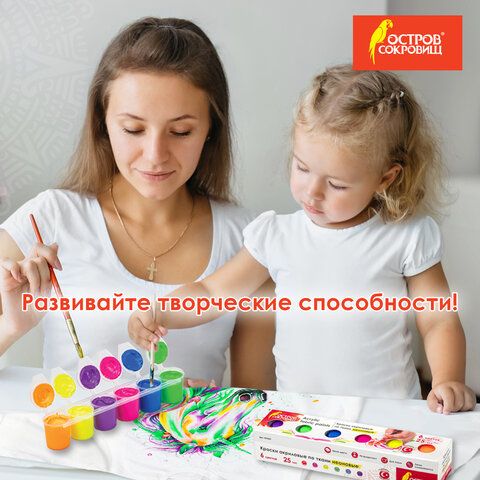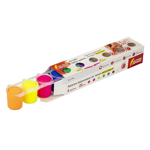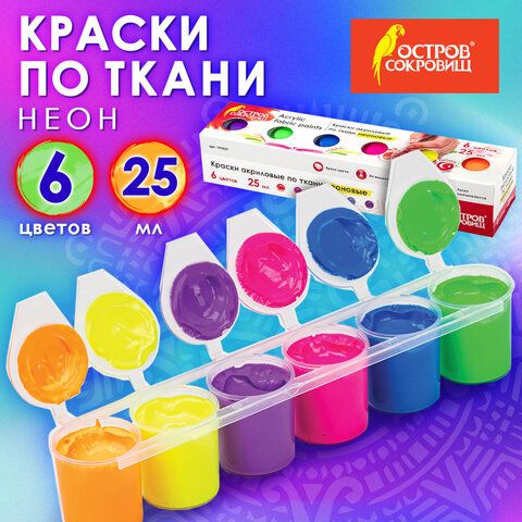 Краски акриловые по ткани НЕОН ОСТРОВ СОКРОВИЩ 6 цветов по 25 мл, 191697