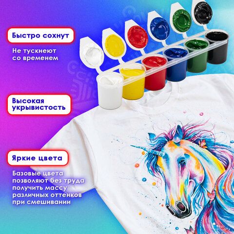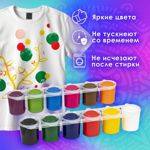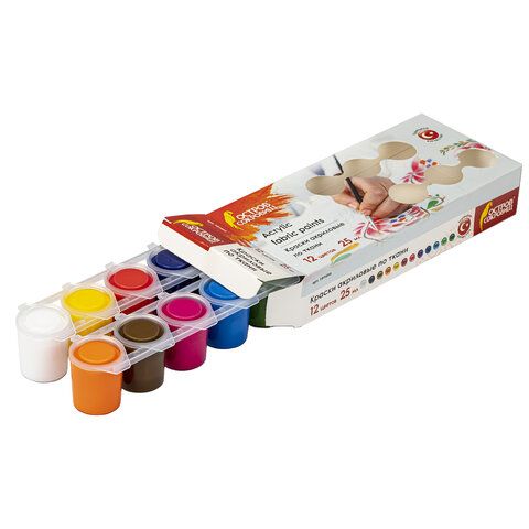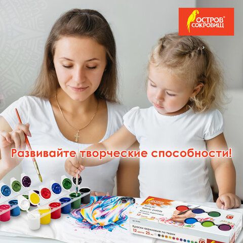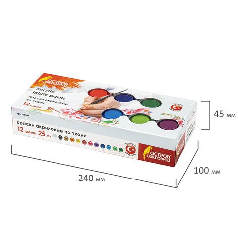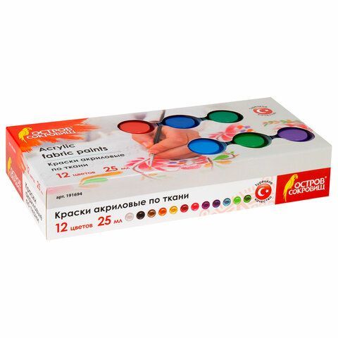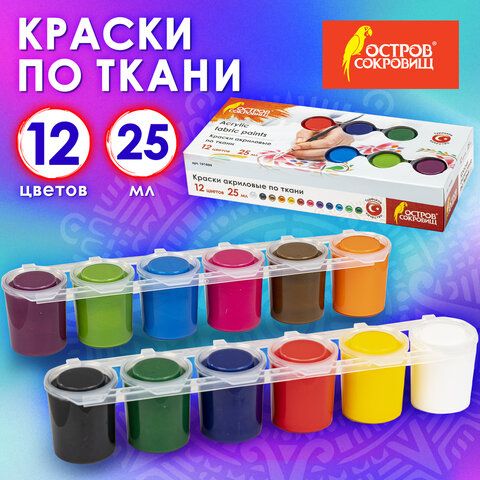 Краски акриловые по ткани ОСТРОВ СОКРОВИЩ 12 цветов по 25 мл, 191694