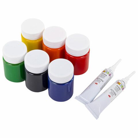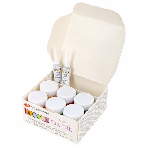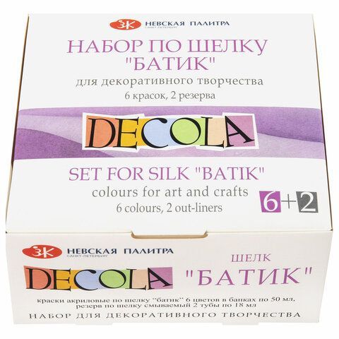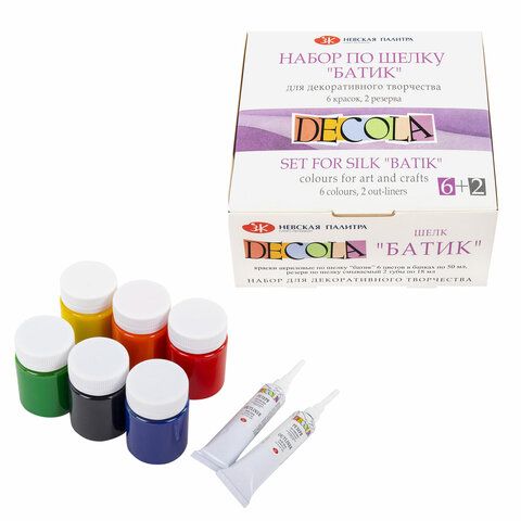 Краски по ткани акриловые "Декола" "Батик по шелку", НАБОР 6 цветов по 50 мл + резерв 2 тубы по 18 мл, 4441448