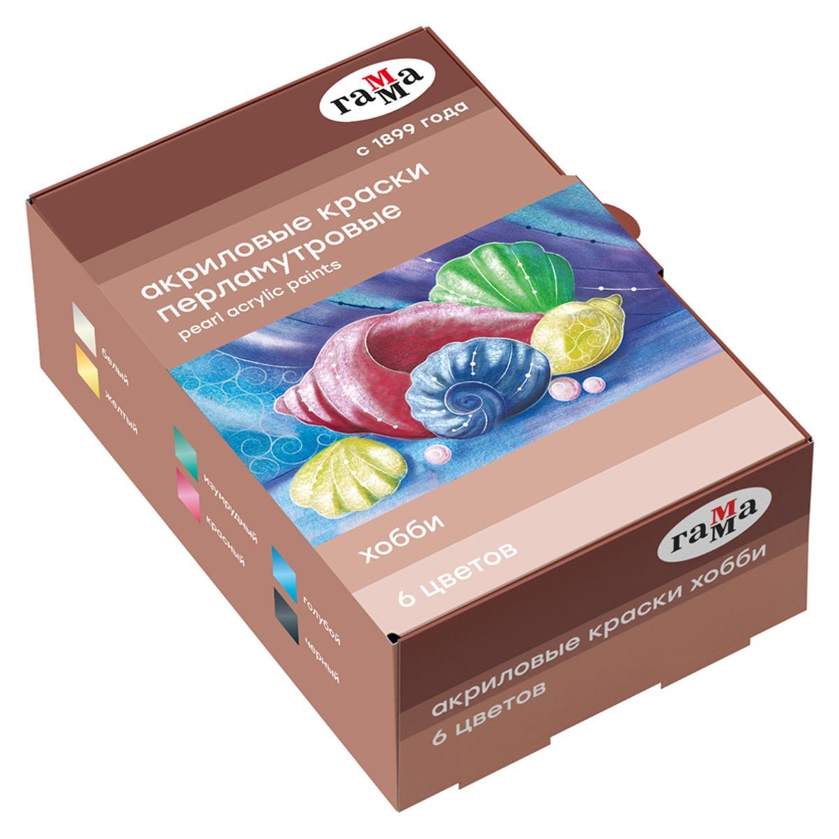 Краски акриловые декоративные Гамма "Хобби", 06 цветов, 20мл, картон. упаковка, перламутр.