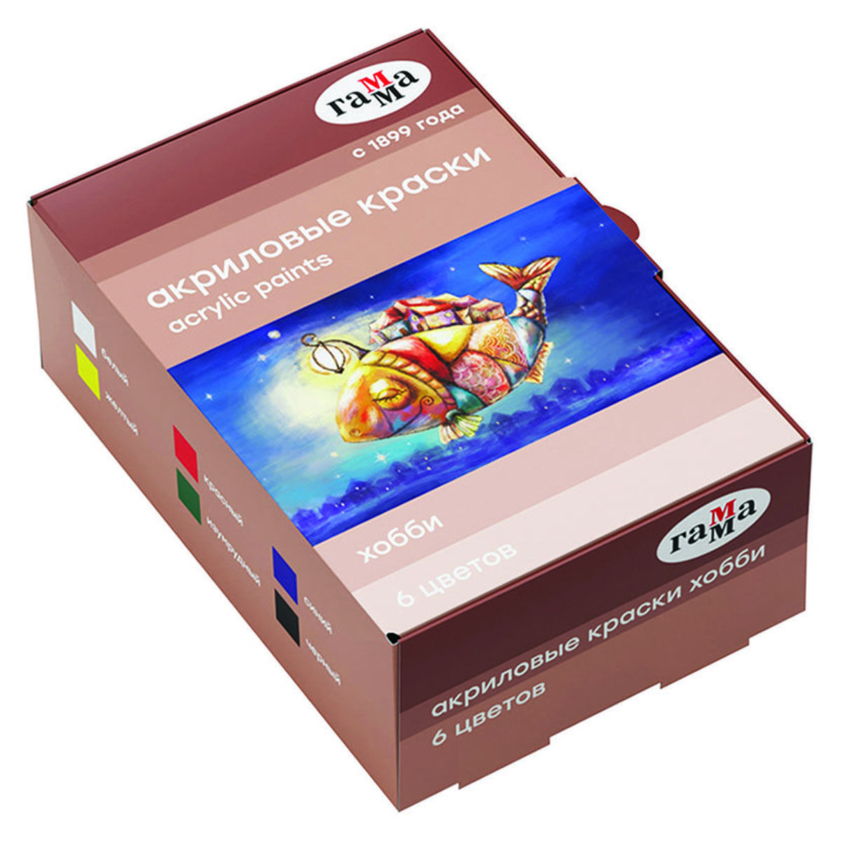 Краски акриловые декоративные Гамма "Хобби", 06 цветов, 20мл, картон. упаковка