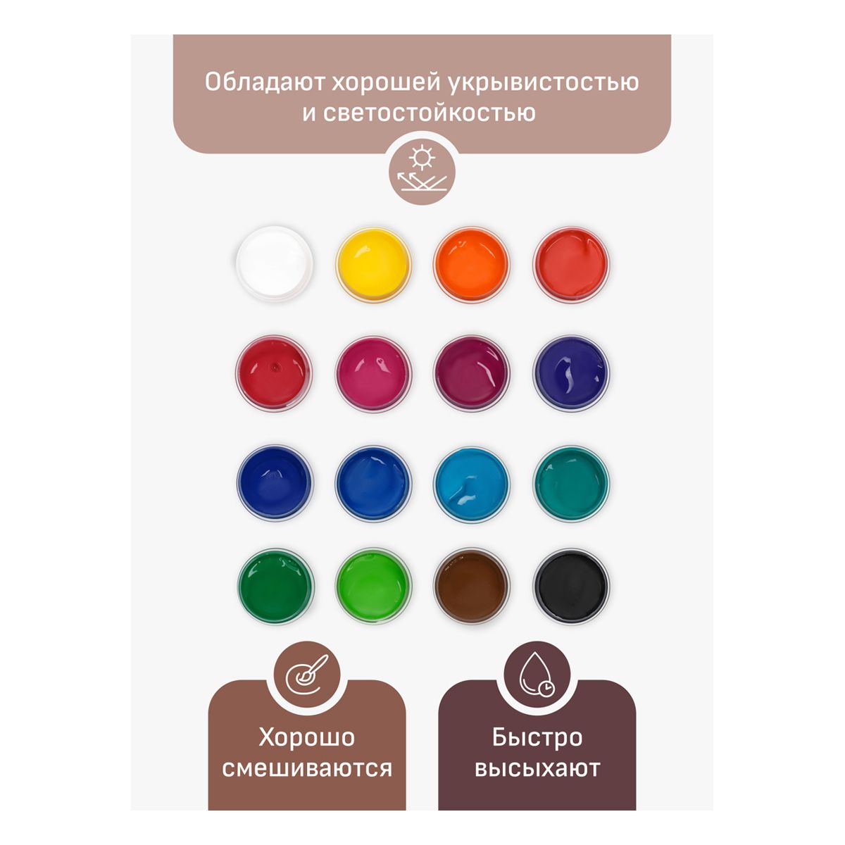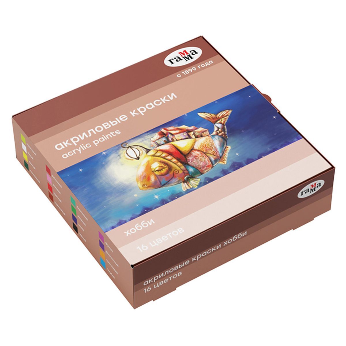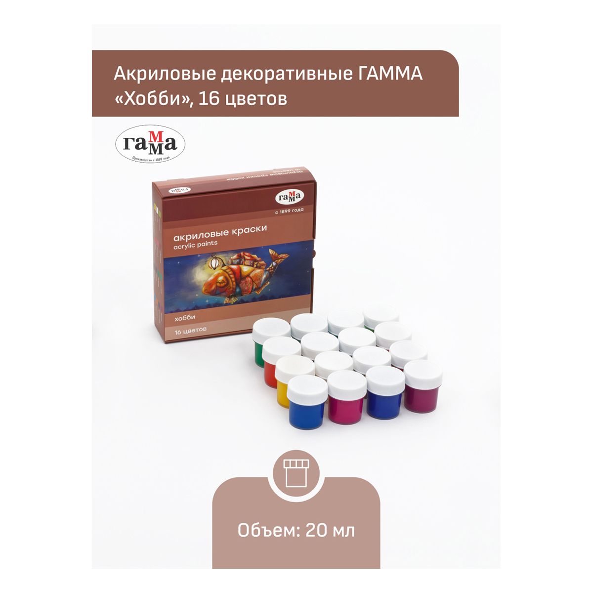 Краски акриловые декоративные Гамма "Хобби", 16 цветов, 20мл, картон. упаковка