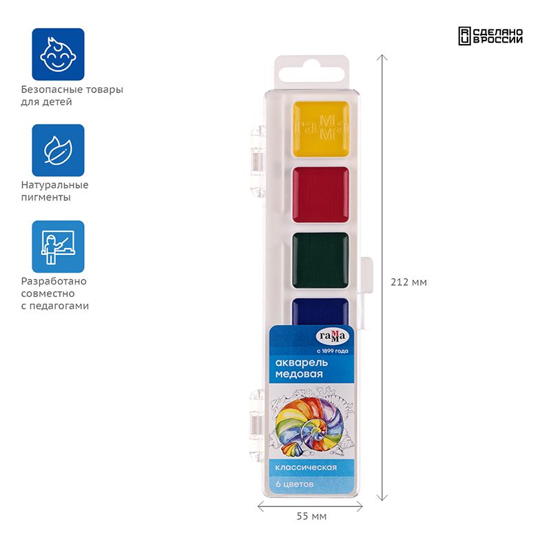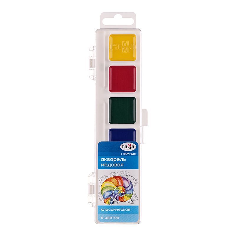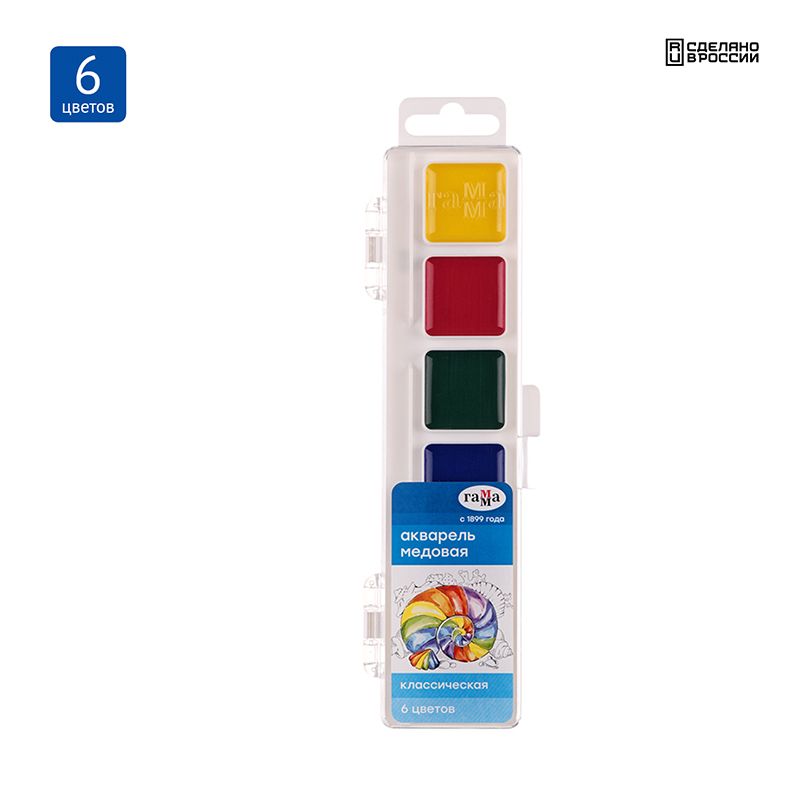 Акварель Гамма "Классическая", медовая, 06 цветов, без кисти, пластик. упак., европодвес NEW