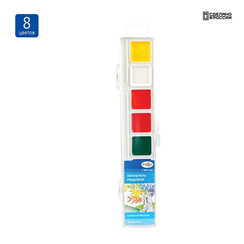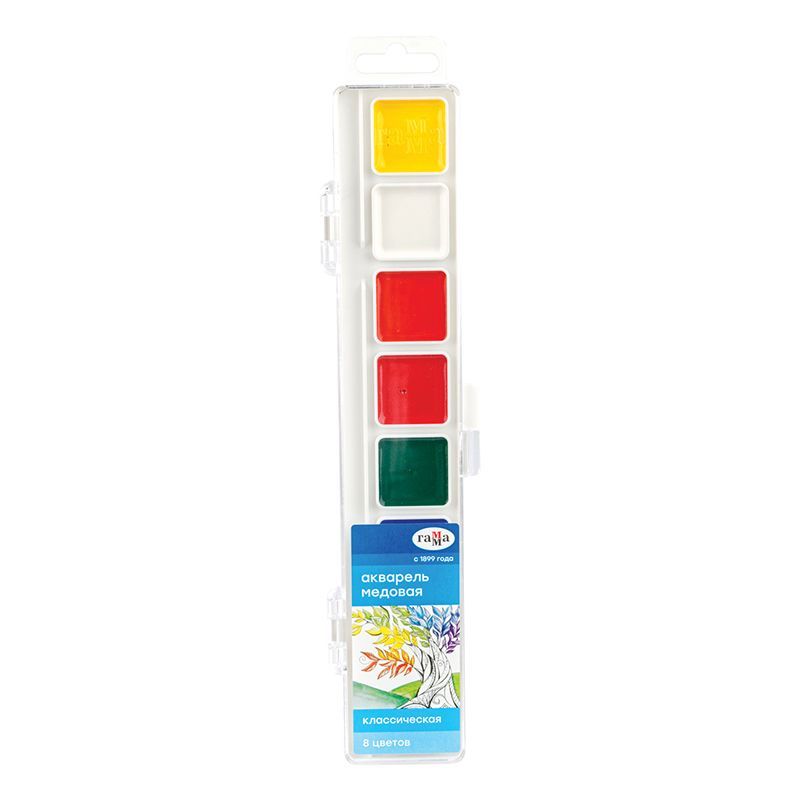 Акварель Гамма "Классическая", медовая, 08 цветов, без кисти, пластик. упак., европодвес NEW