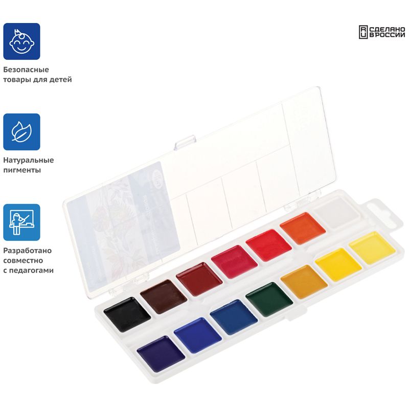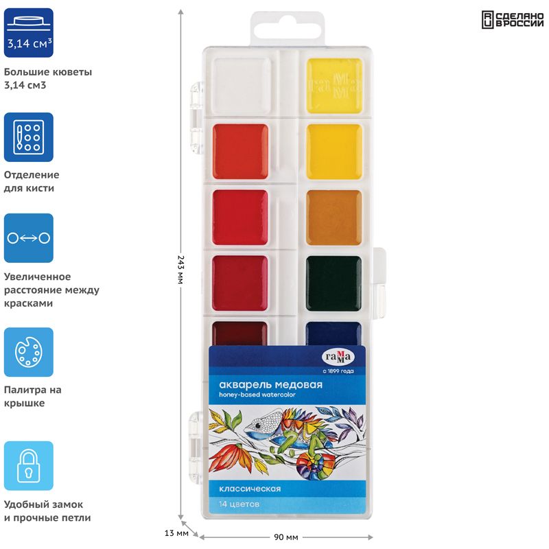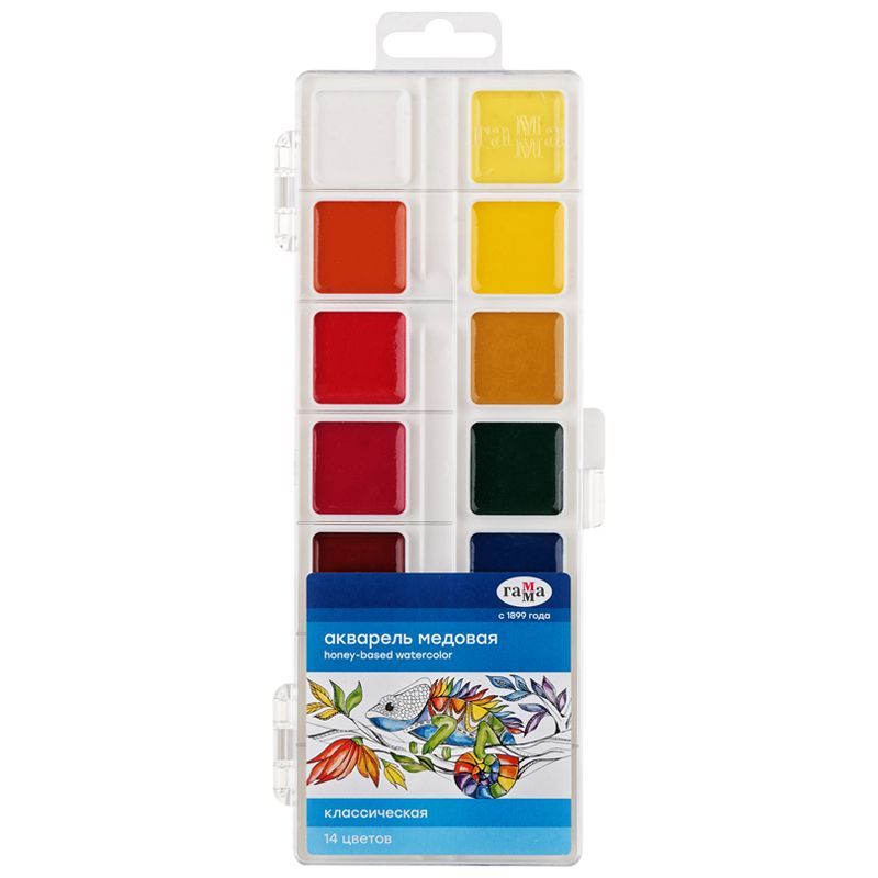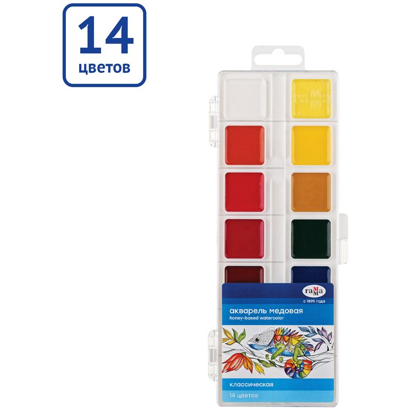 Акварель Гамма "Классическая", медовая, 14 цветов, без кисти, пластик. упак., европодвес NEW