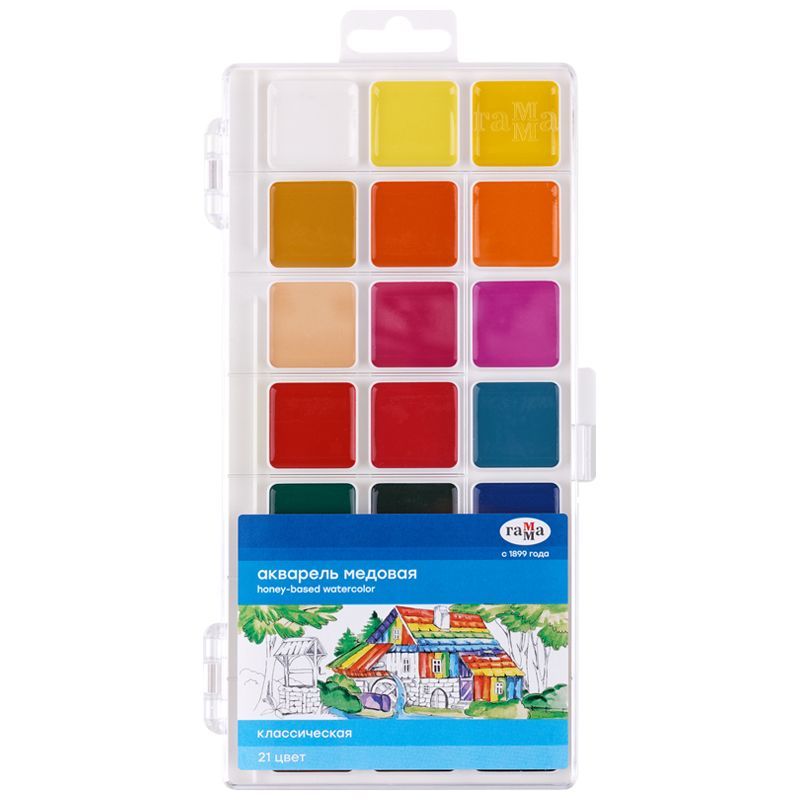 Акварель Гамма "Классическая", медовая, 21 цвет, без кисти, пластик. упак., европодвес NEW