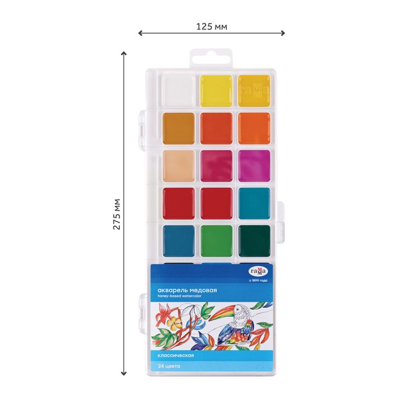 Акварель Гамма "Классическая", медовая, 24 цвета, без кисти, пластик. упак., европодвес NEW
