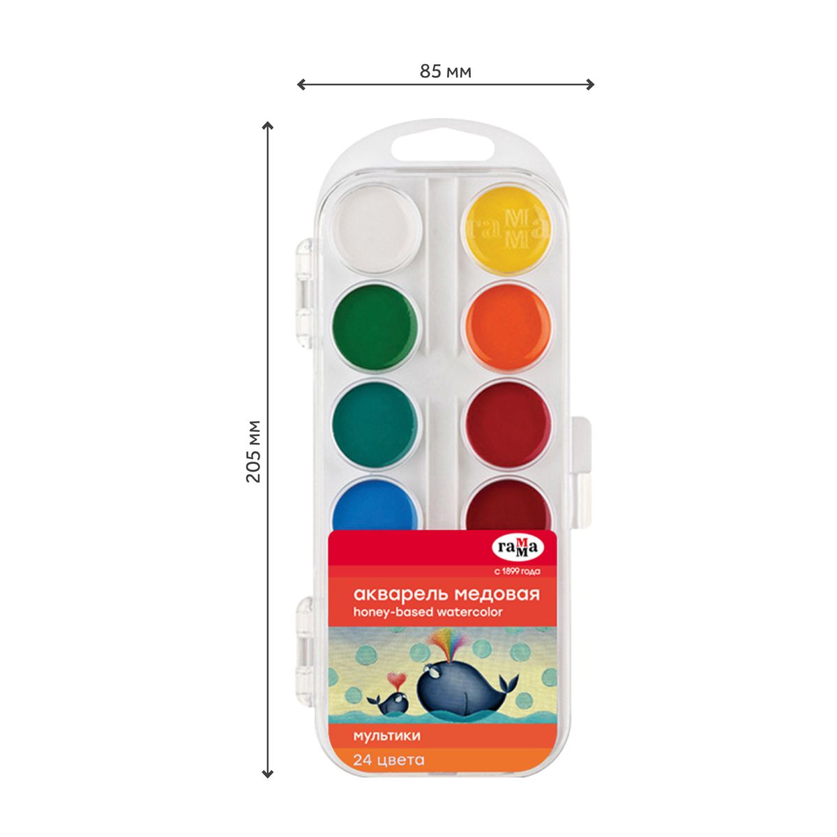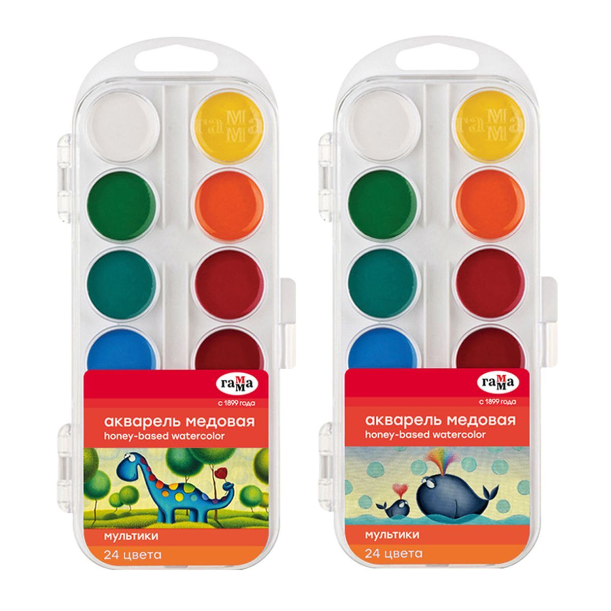 Акварель Гамма "Мультики" NEW, медовая, 24 цвета, без кисти, пластик. упак., европодвес