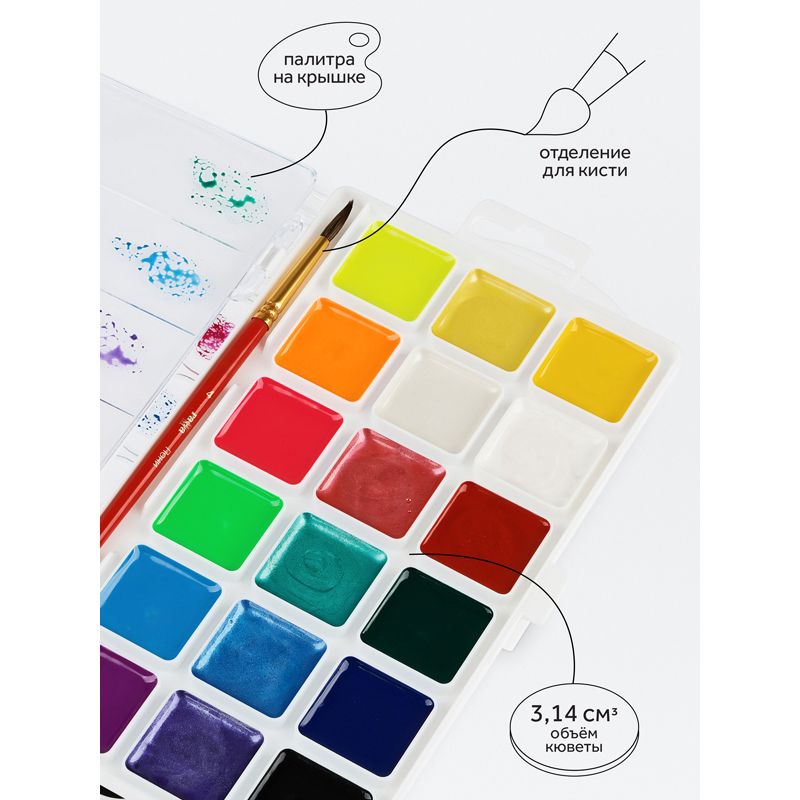Акварель Гамма "Оранжевое солнце", медовая, 18 цветов (6 перл.,6 флуор., 6 классич.), без кисти, пластик, европодвес
