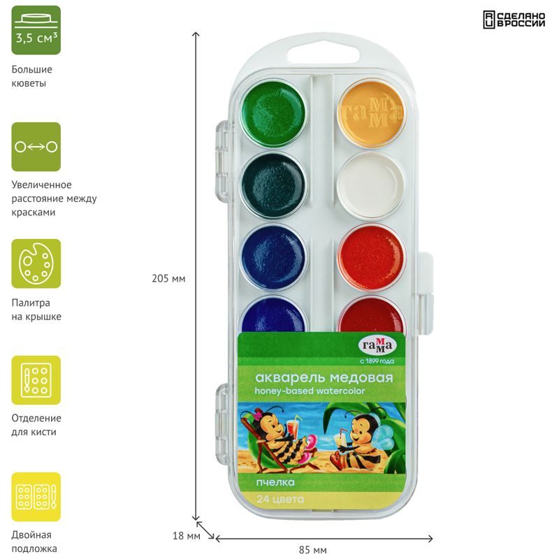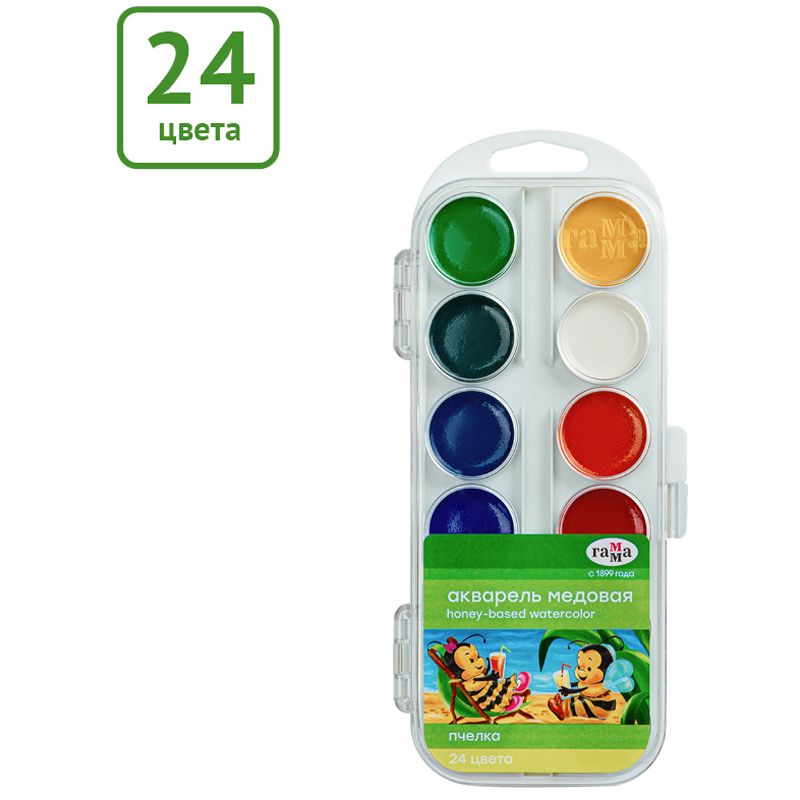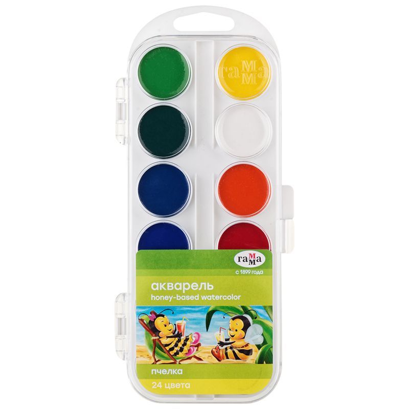 Акварель Гамма "Пчелка NEW", медовая, 24 цвета, без кисти, пластик. упак., европодвес