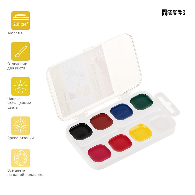 Акварель Гамма "Юный художник", медовая, 08 цветов, без кисти, пластик. упак., европодвес
