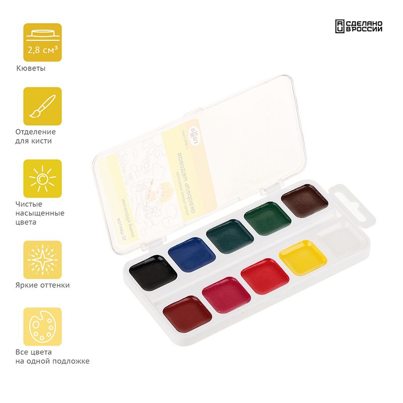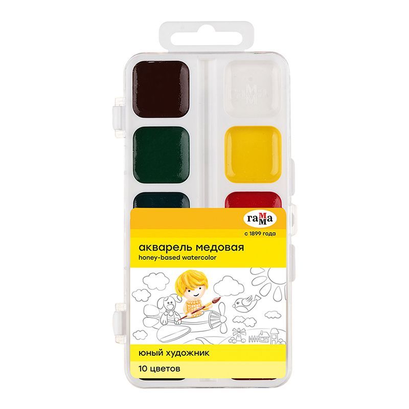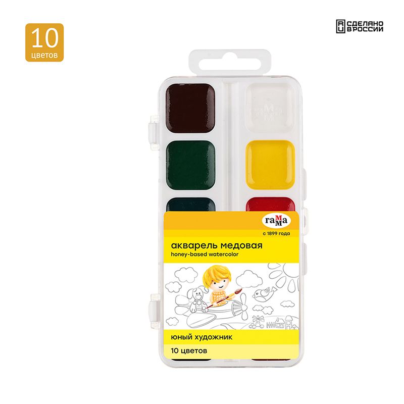 Акварель Гамма "Юный художник", медовая, 10 цветов, без кисти, пластик. упак., европодвес