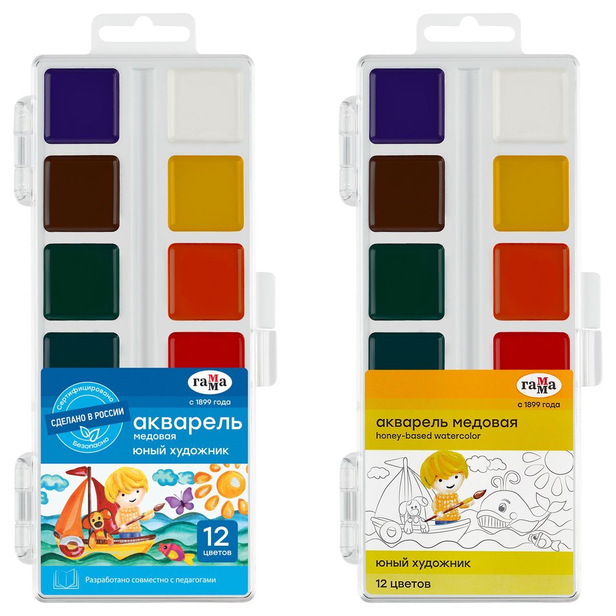 Акварель Гамма "Юный художник", медовая, 12 цветов, без кисти, пластик. упак., европодвес