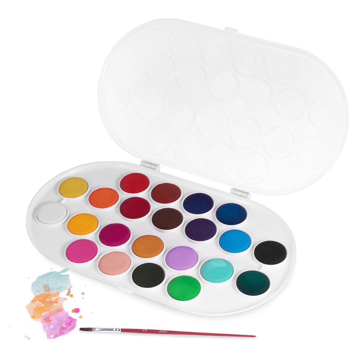 Акварель JOVI, 22 цвета, большие кюветы, с кистью, пластик