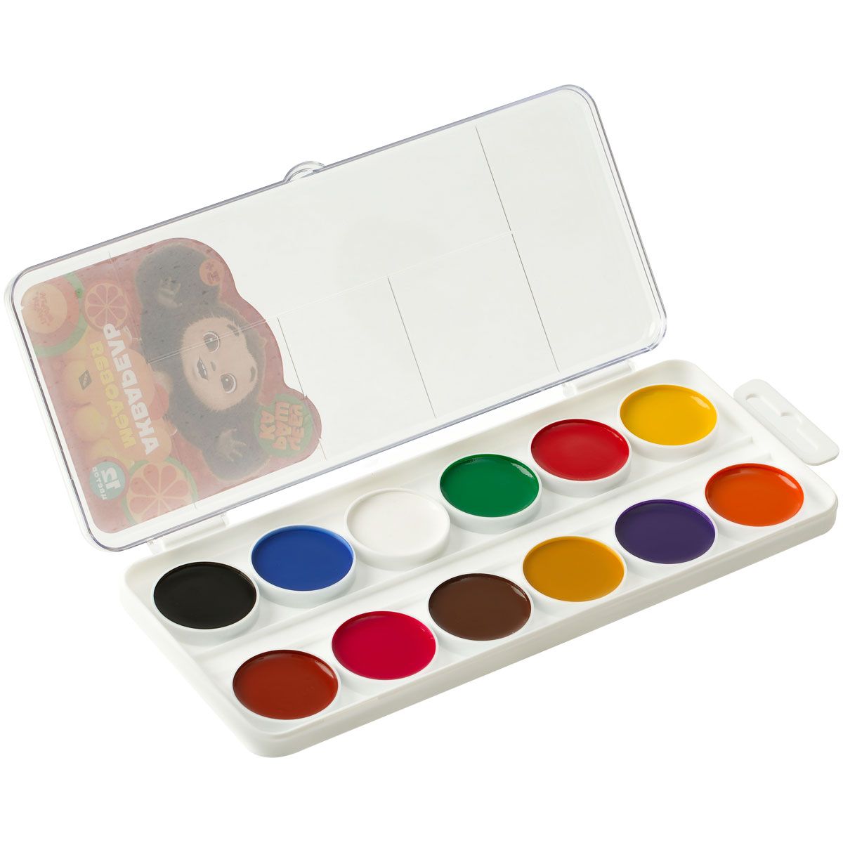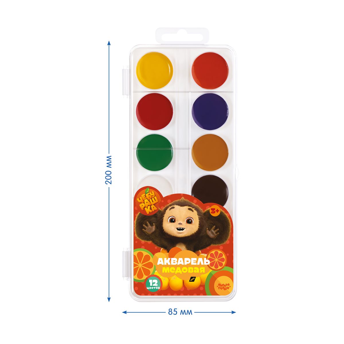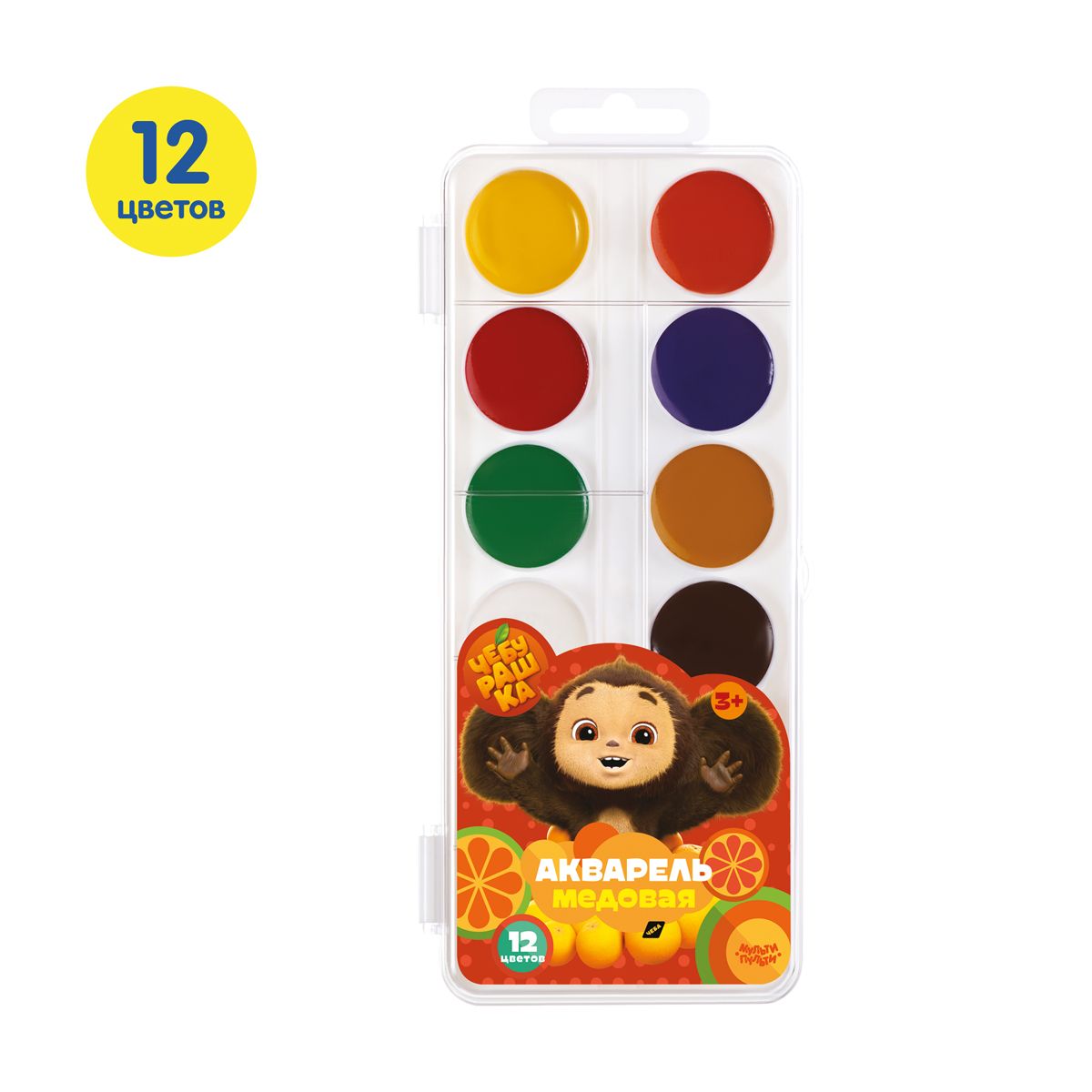 Акварель Мульти-Пульти "Чебурашка", медовая, 12 цветов, без кисти, пластик, европодвес