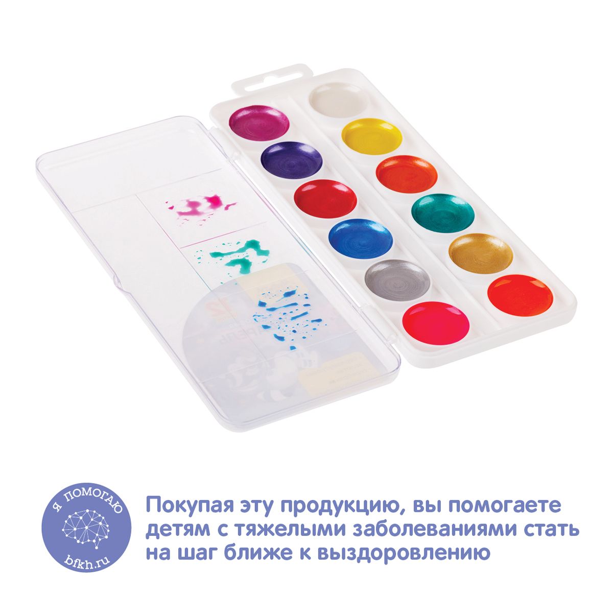Акварель Мульти-Пульти "Енот в космосе", медовая, 12 цветов (8 перл.+золото+серебро+2 флуор.) без кисти, пластик