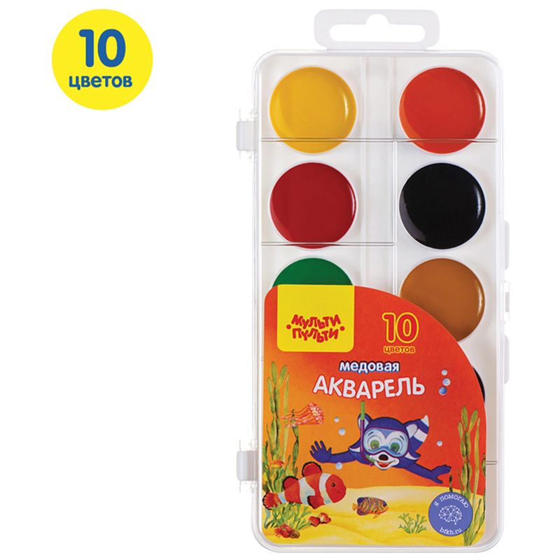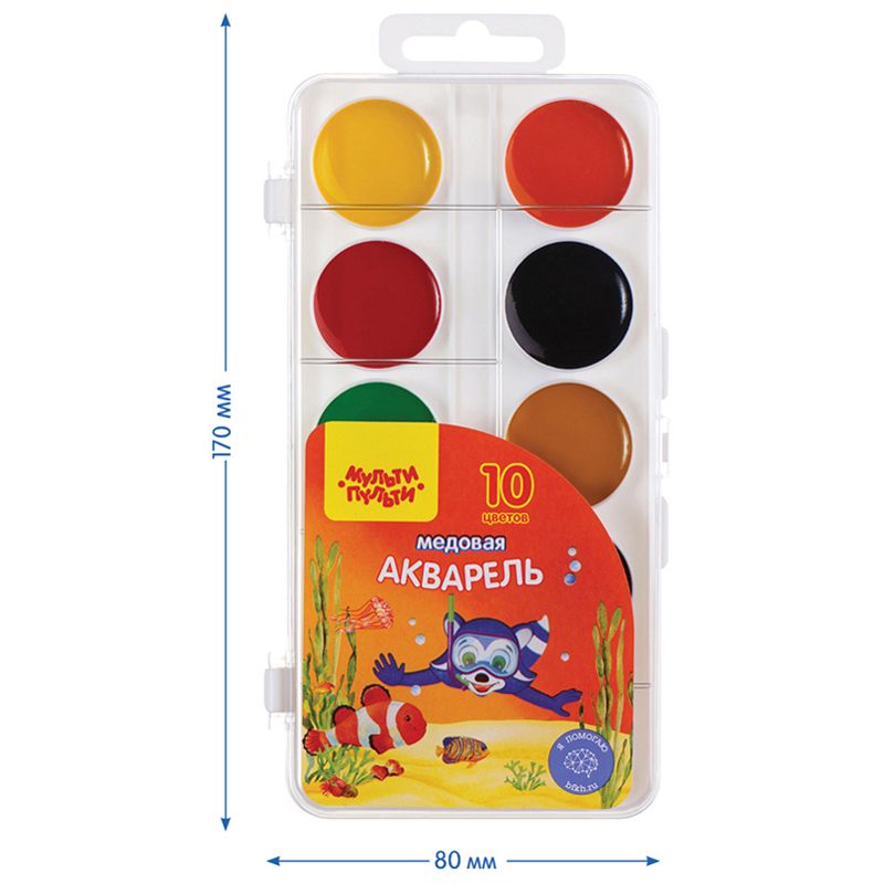Акварель Мульти-Пульти "Енот в Красном море", медовая, 10 цветов, без кисти, пластик, европодвес