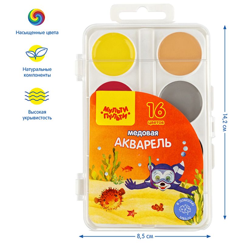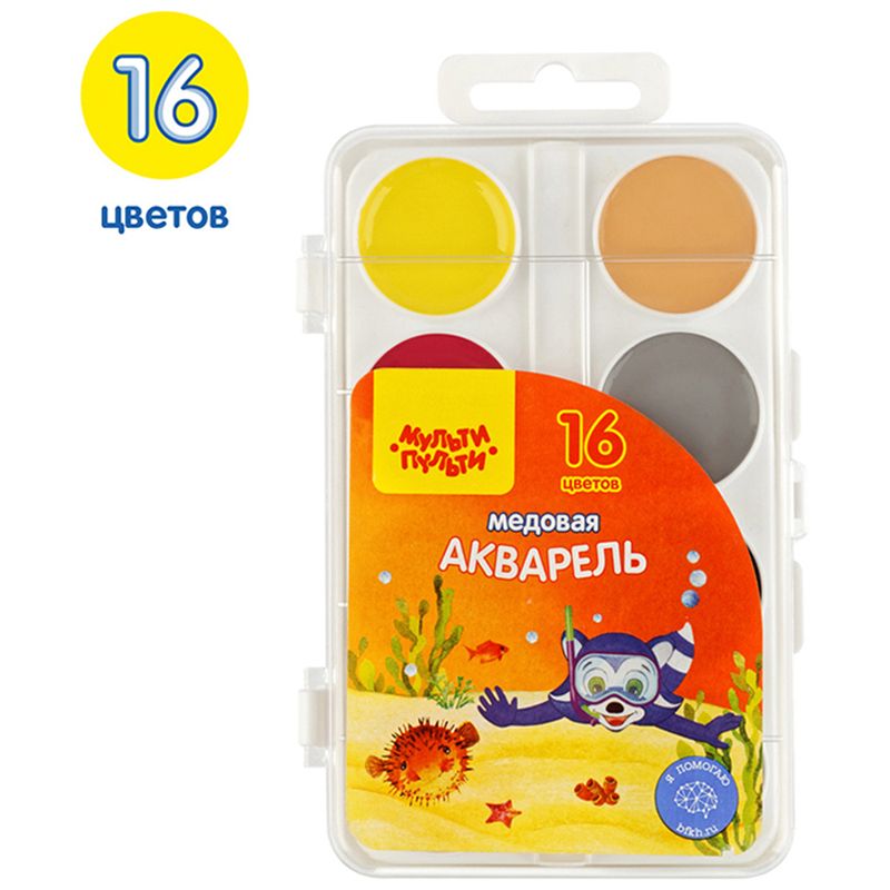 Акварель Мульти-Пульти "Енот в Красном море", медовая, 16 цветов, без кисти, пластик, европодвес