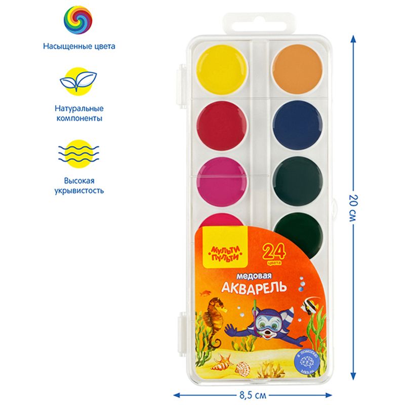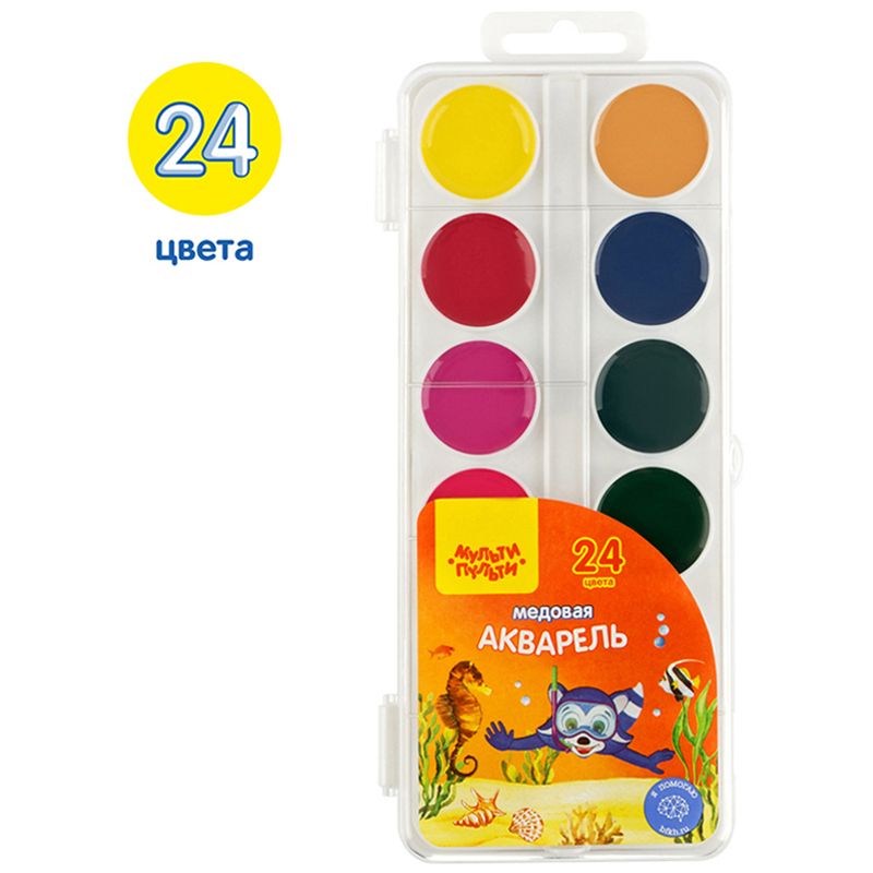 Акварель Мульти-Пульти "Енот в Красном море", медовая, 24 цветов, без кисти, пластик, европодвес