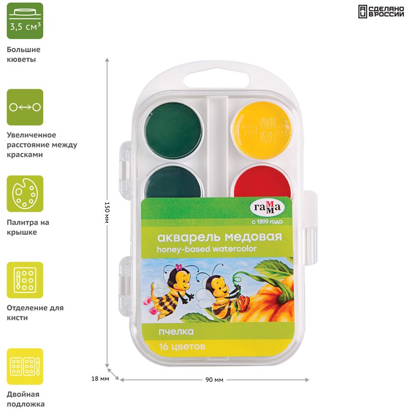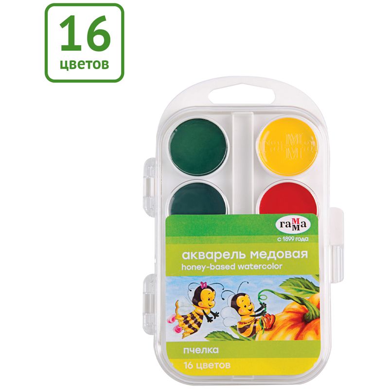 Медовая акварель Гамма "Пчёлка" для детей дошкольного и школьного возраста. Подходит для школы и детских садов. Рекомендовано для детей от 3 до 6 лет.