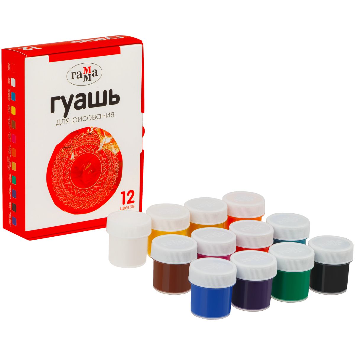 Гуашь Гамма, 12 цветов, 20мл, картон. упаковка