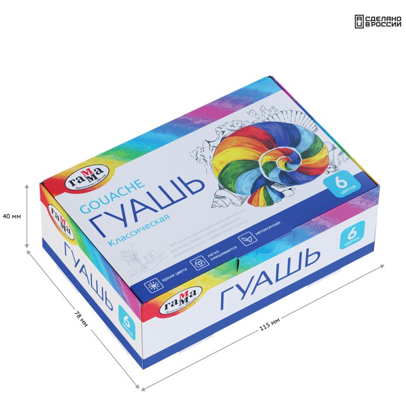 Гуашь Гамма "Классическая", 06 цветов, 20мл, картон. упаковка