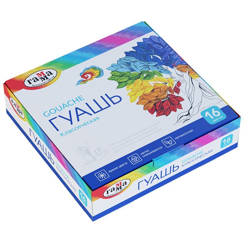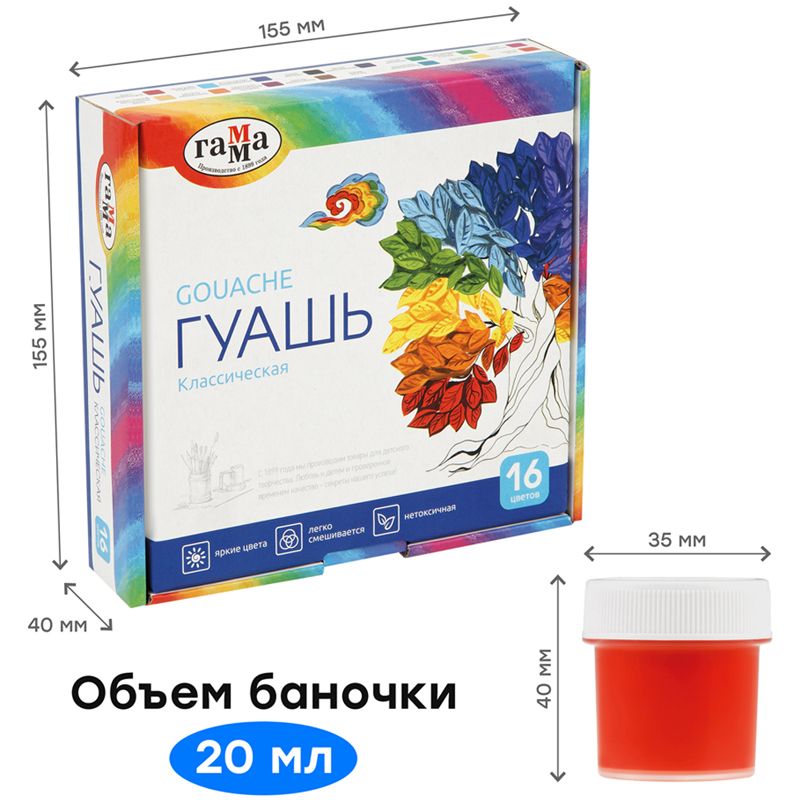 Гуашь Гамма "Классическая", 16 цветов, 20мл, картон. упаковка