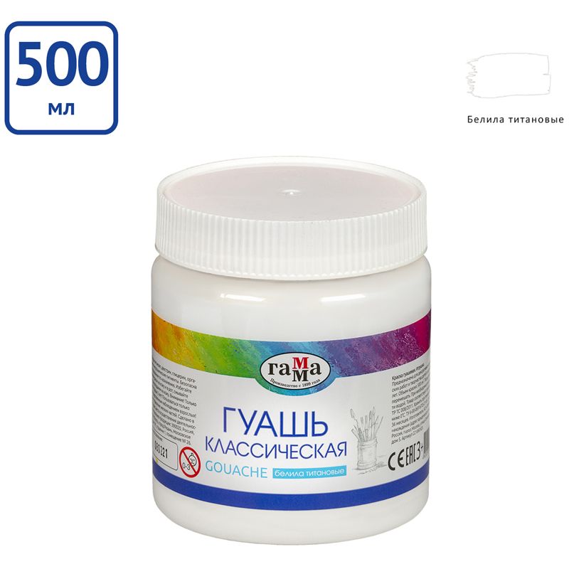 Гуашь Гамма "Классическая", белила титановые, 500мл