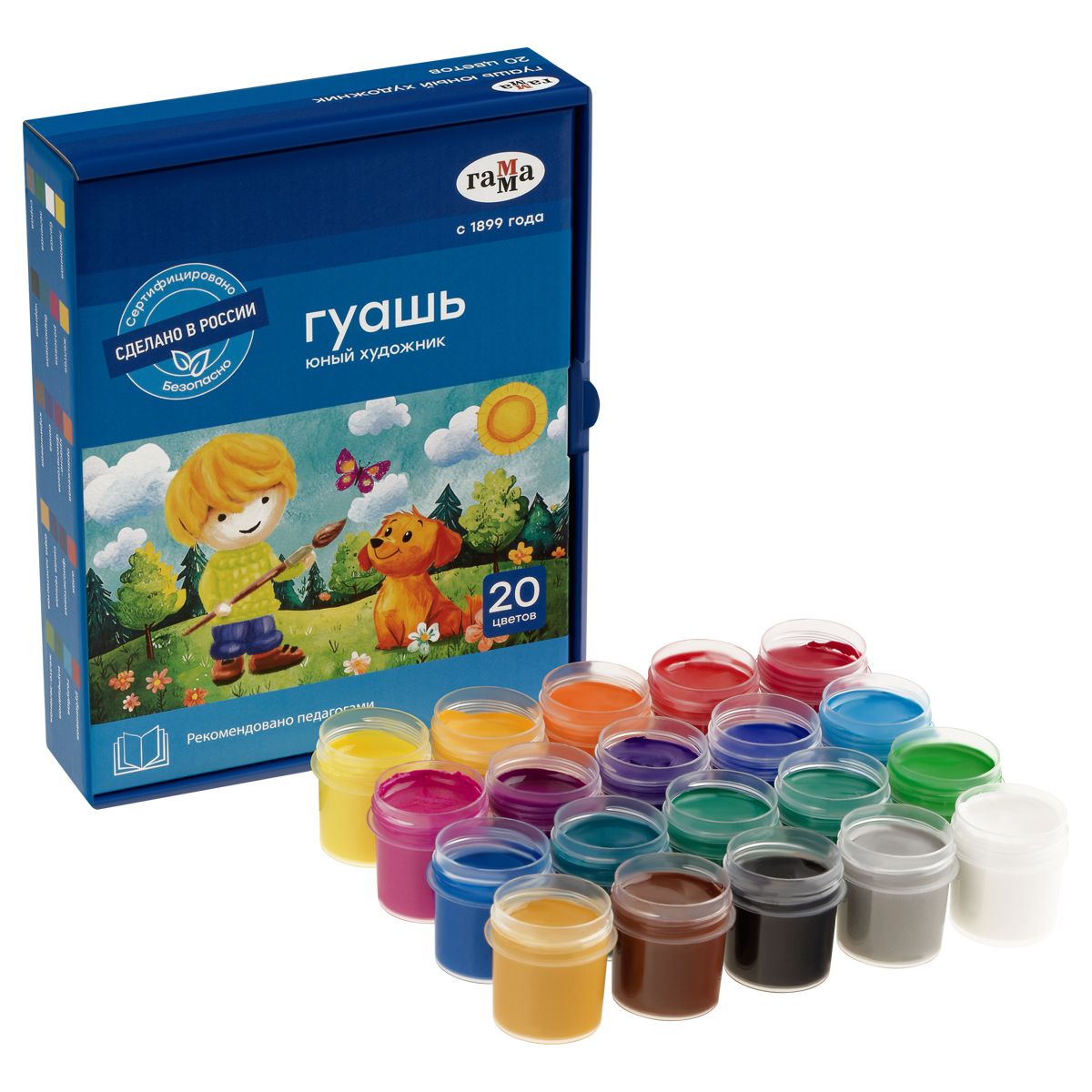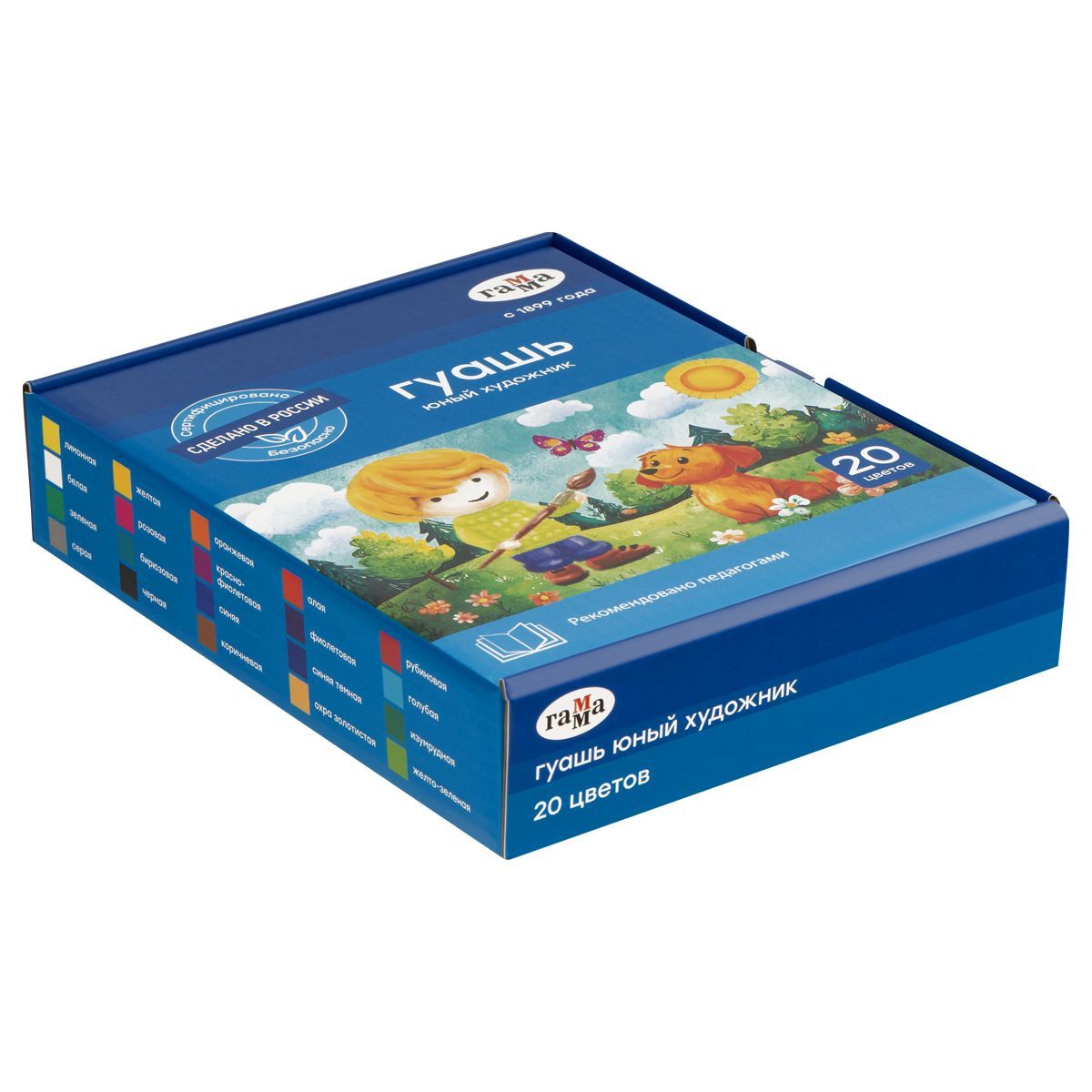 Гуашь Гамма "Юный художник NEW", 20 цветов, 17,5мл, картон. упаковка