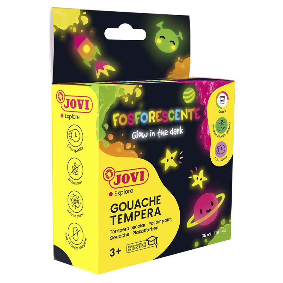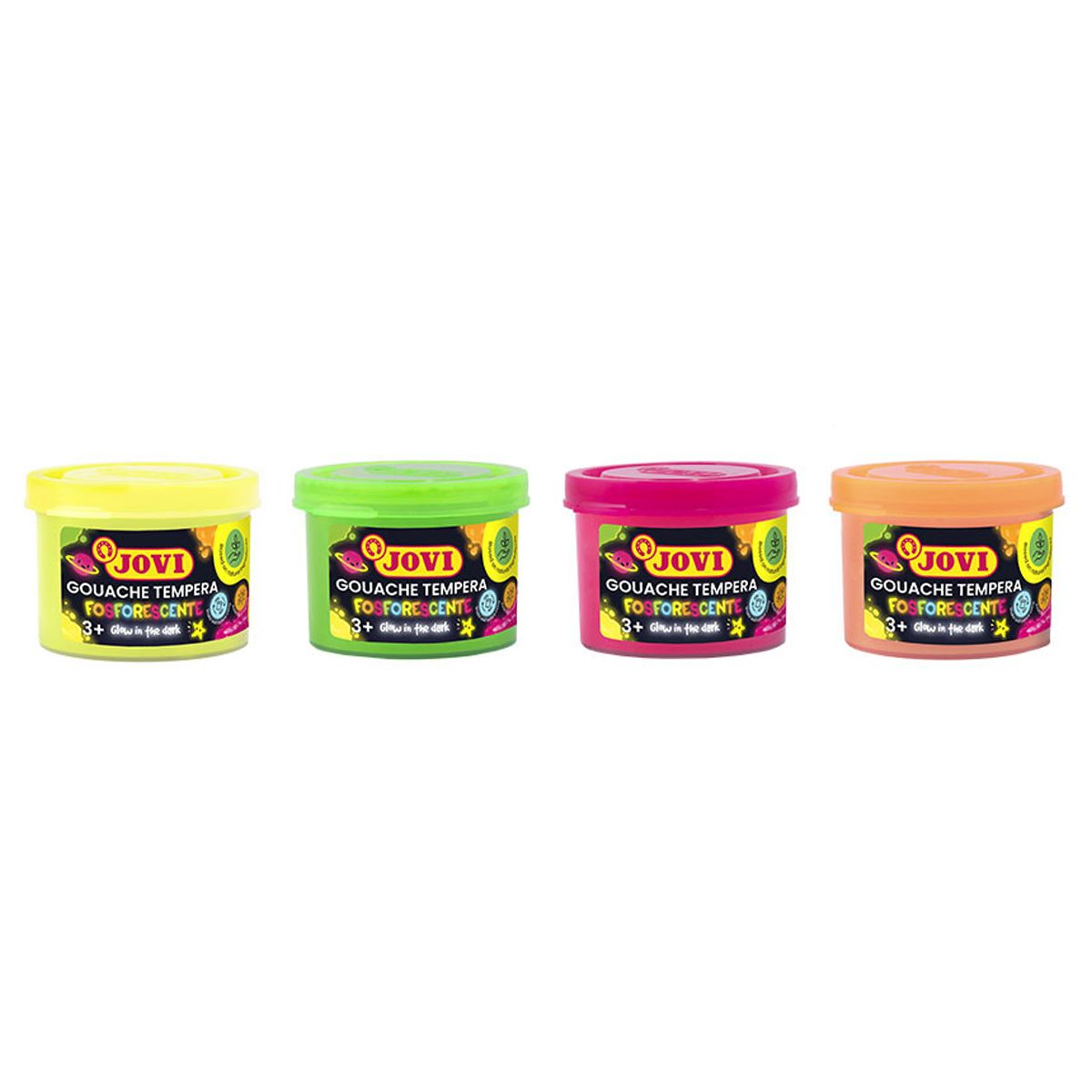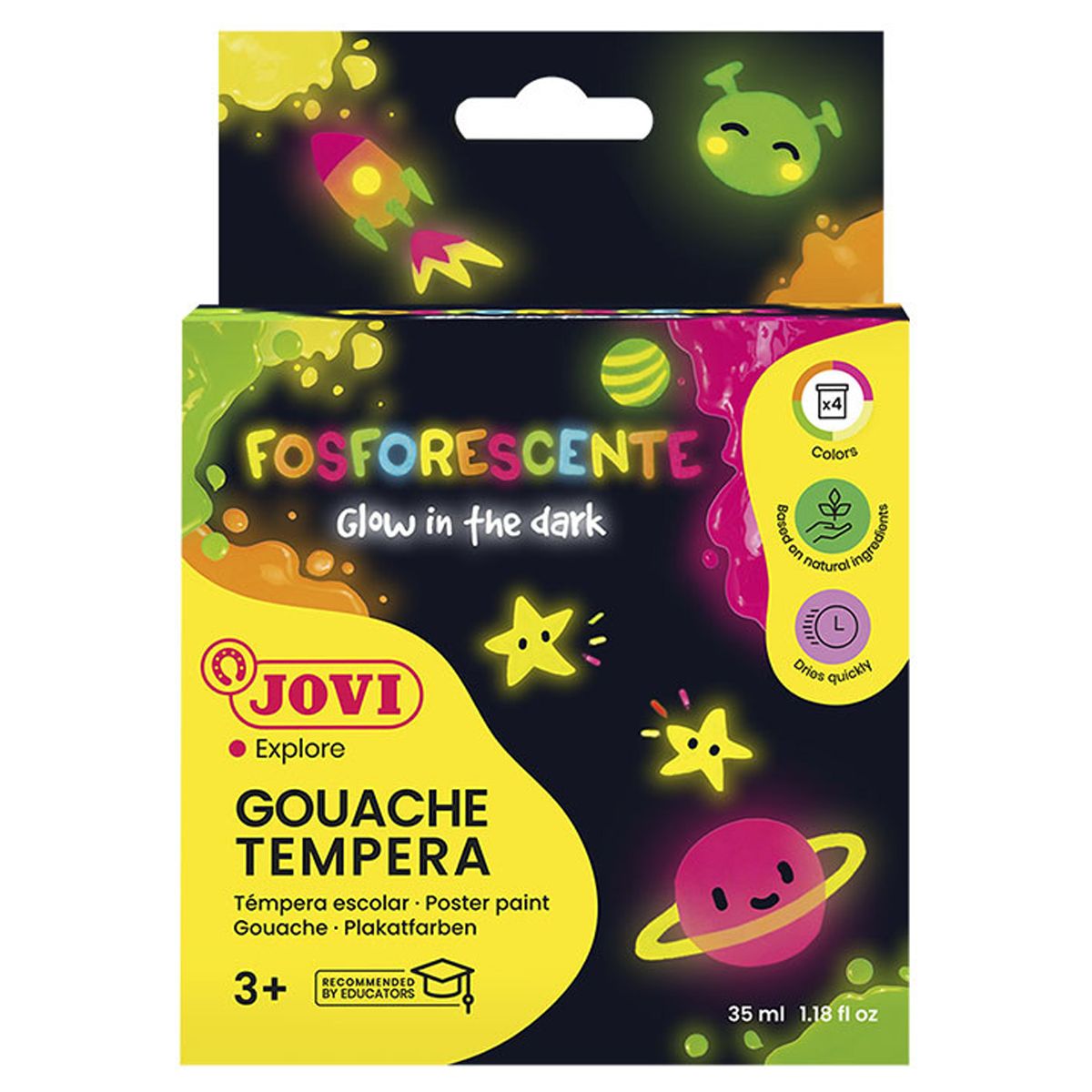 Гуашь JOVI, 04 цвета, 55мл, светящаяся в темноте, картонная коробка