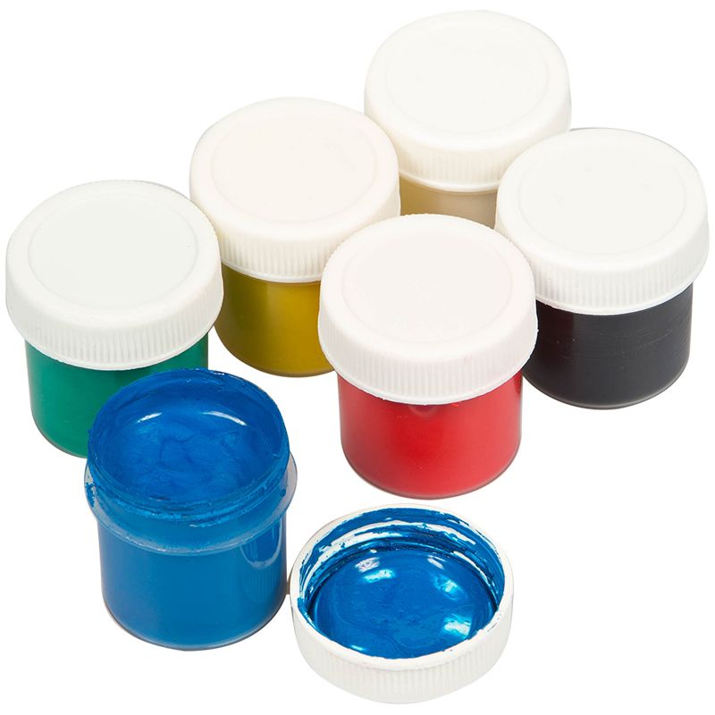 Гуашь фасуется в пластиковые герметичные баночки с завинчивающейся крышкой. Обладают хорошей кроющей способностью и чистотой цвета.