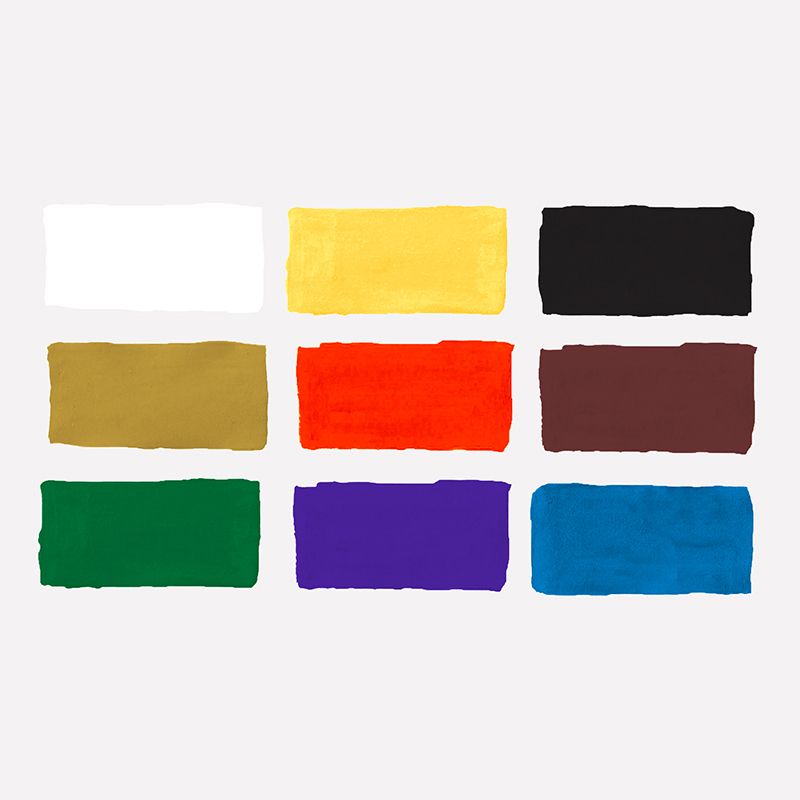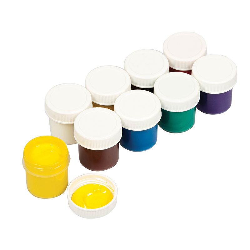 Гуашь фасуется в пластиковые герметичные баночки с завинчивающейся крышкой. Обладают хорошей кроющей способностью и чистотой цвета.