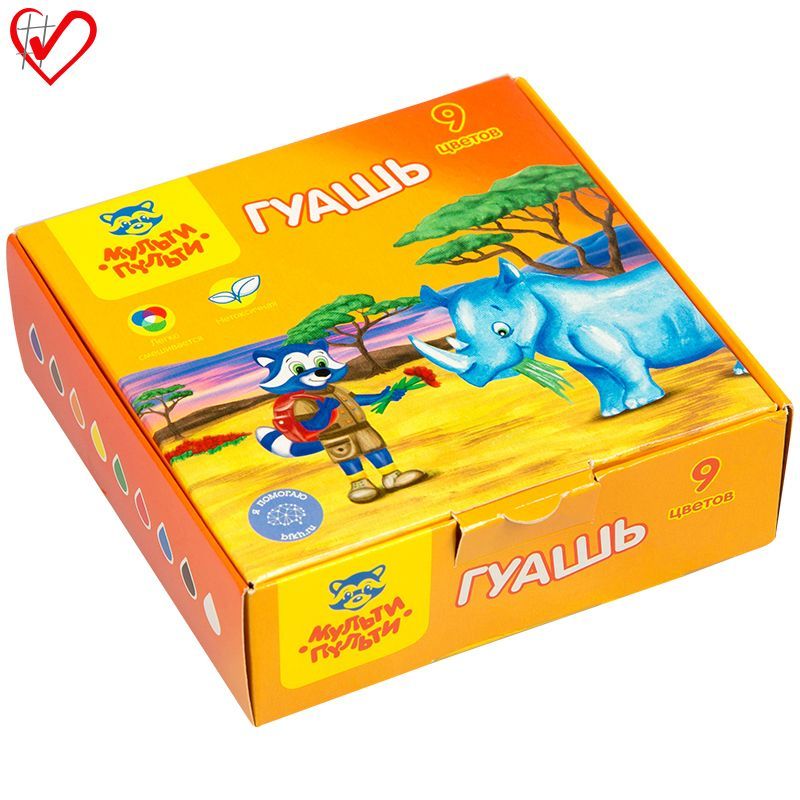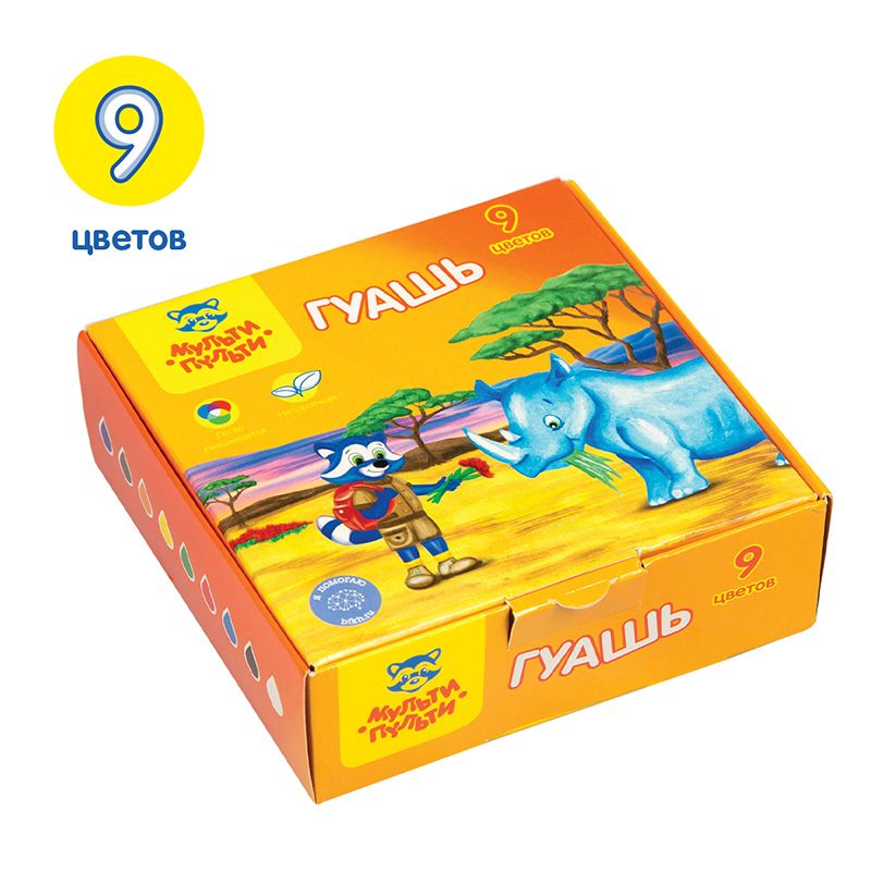 Гуашь Мульти-Пульти "Енот в Африке", 09 цветов, 20мл, картон