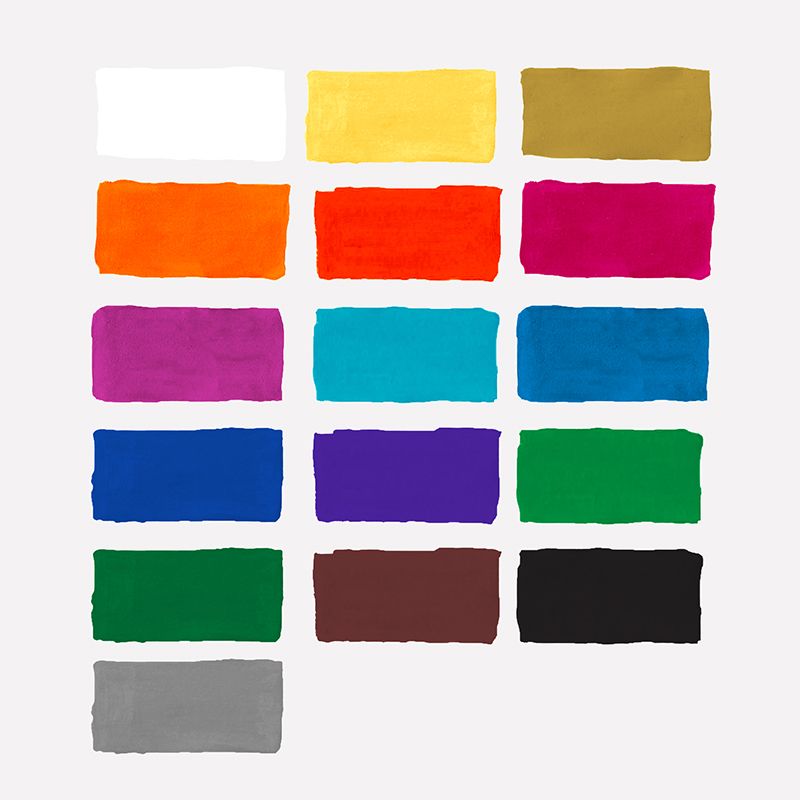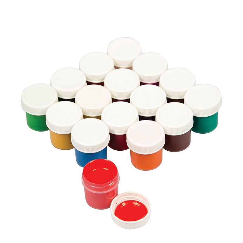 Гуашь фасуется в пластиковые герметичные баночки с завинчивающейся крышкой. Обладают хорошей кроющей способностью и чистотой цвета.