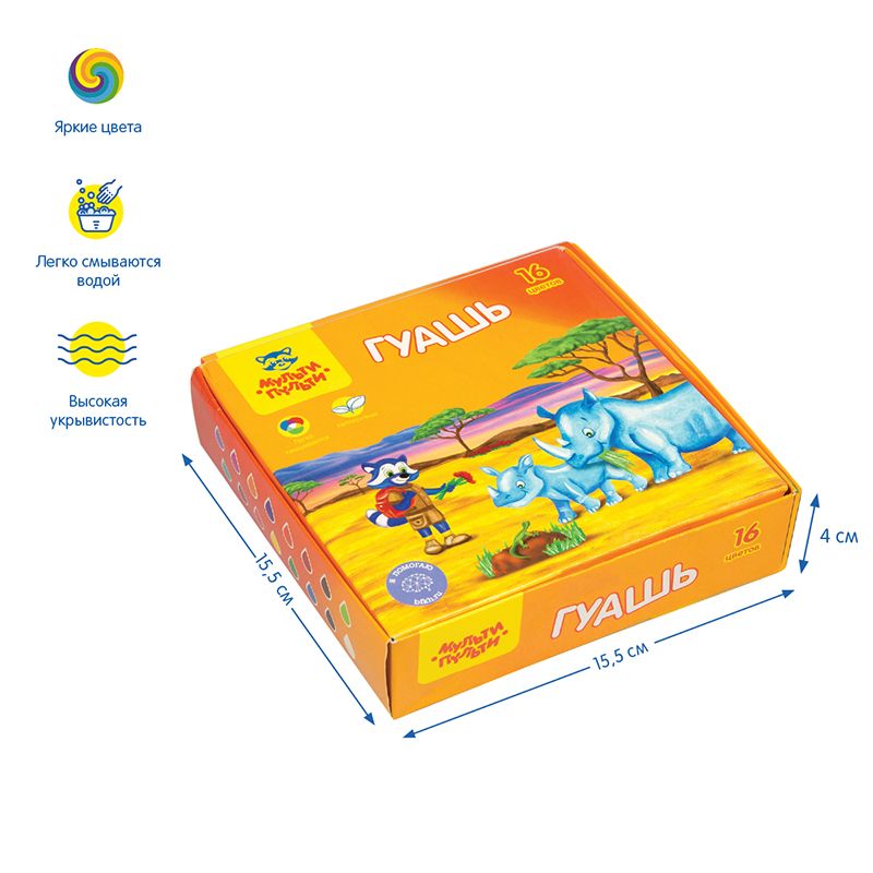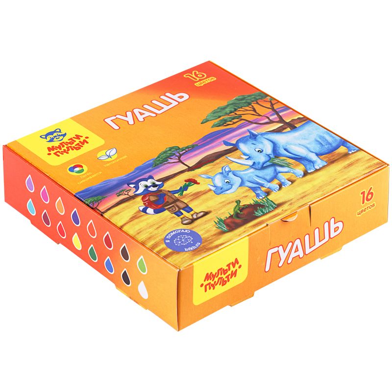 Гуашь Мульти-Пульти "Енот в Африке", 16 цветов, 20мл, картон