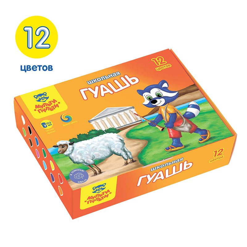 Гуашь Мульти-Пульти "Енот в Греции", 12 цветов, 17,5мл, картон