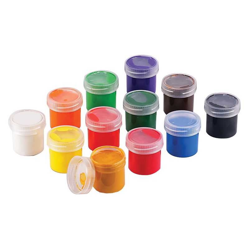 Гуашь фасуется в пластиковые герметичные баночки с завинчивающейся крышкой. Обладают хорошей кроющей способностью и чистотой цвета.
