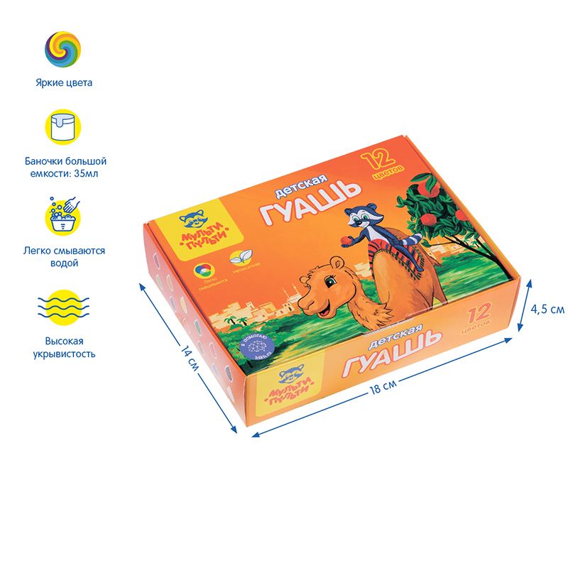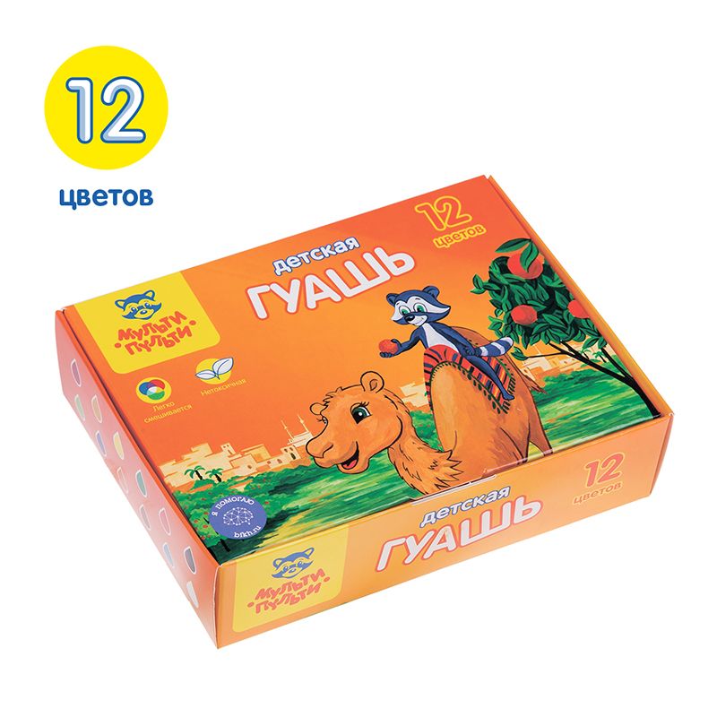 Гуашь Мульти-Пульти "Енот в Марокко", 12 цветов, 35мл, картон