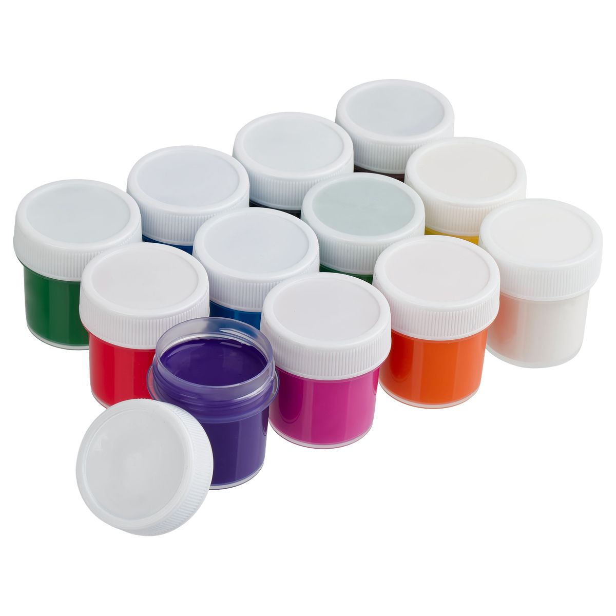 Гуашь фасуется в пластиковые герметичные баночки с завинчивающейся крышкой. Обладают хорошей кроющей способностью и чистотой цвета.